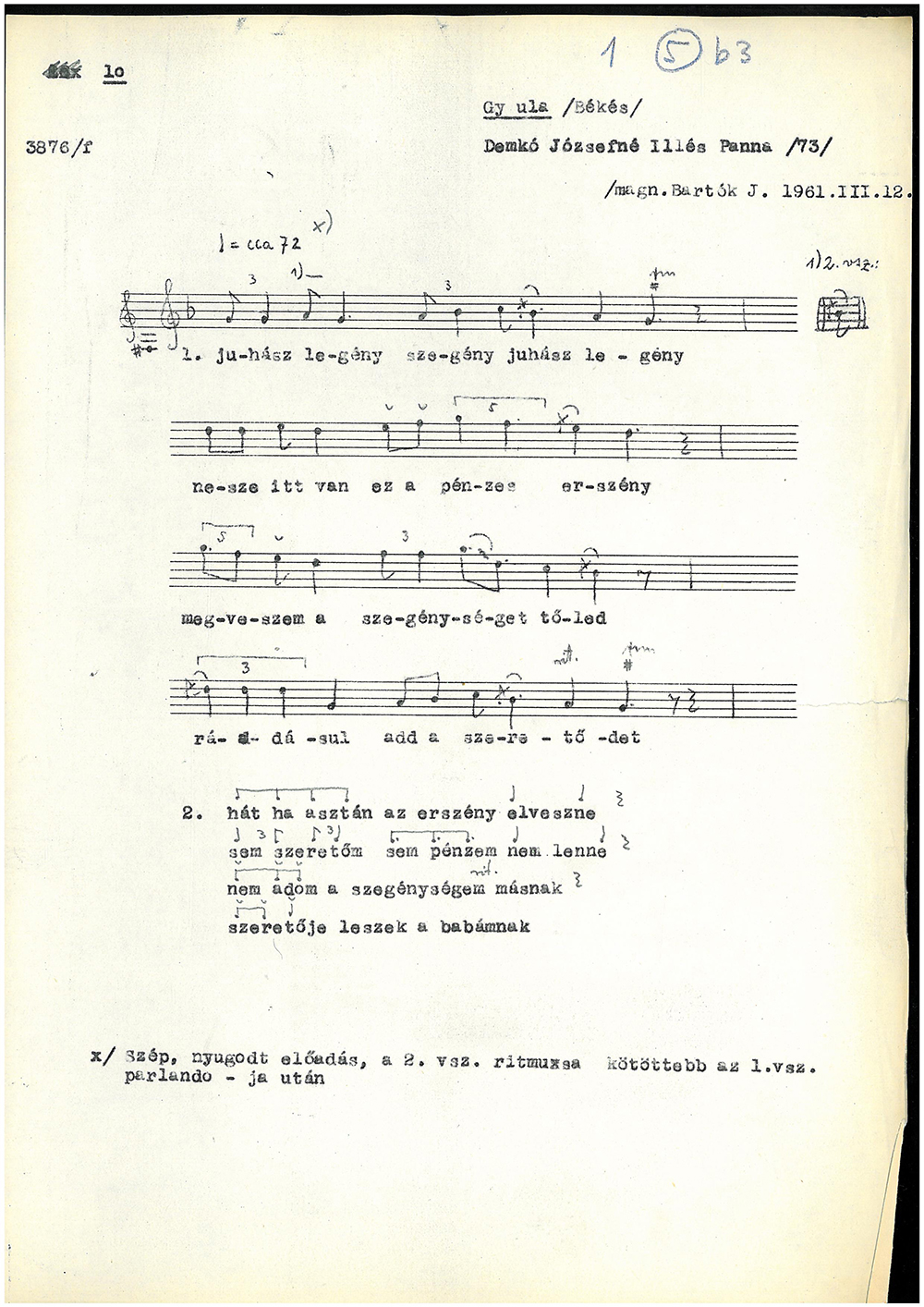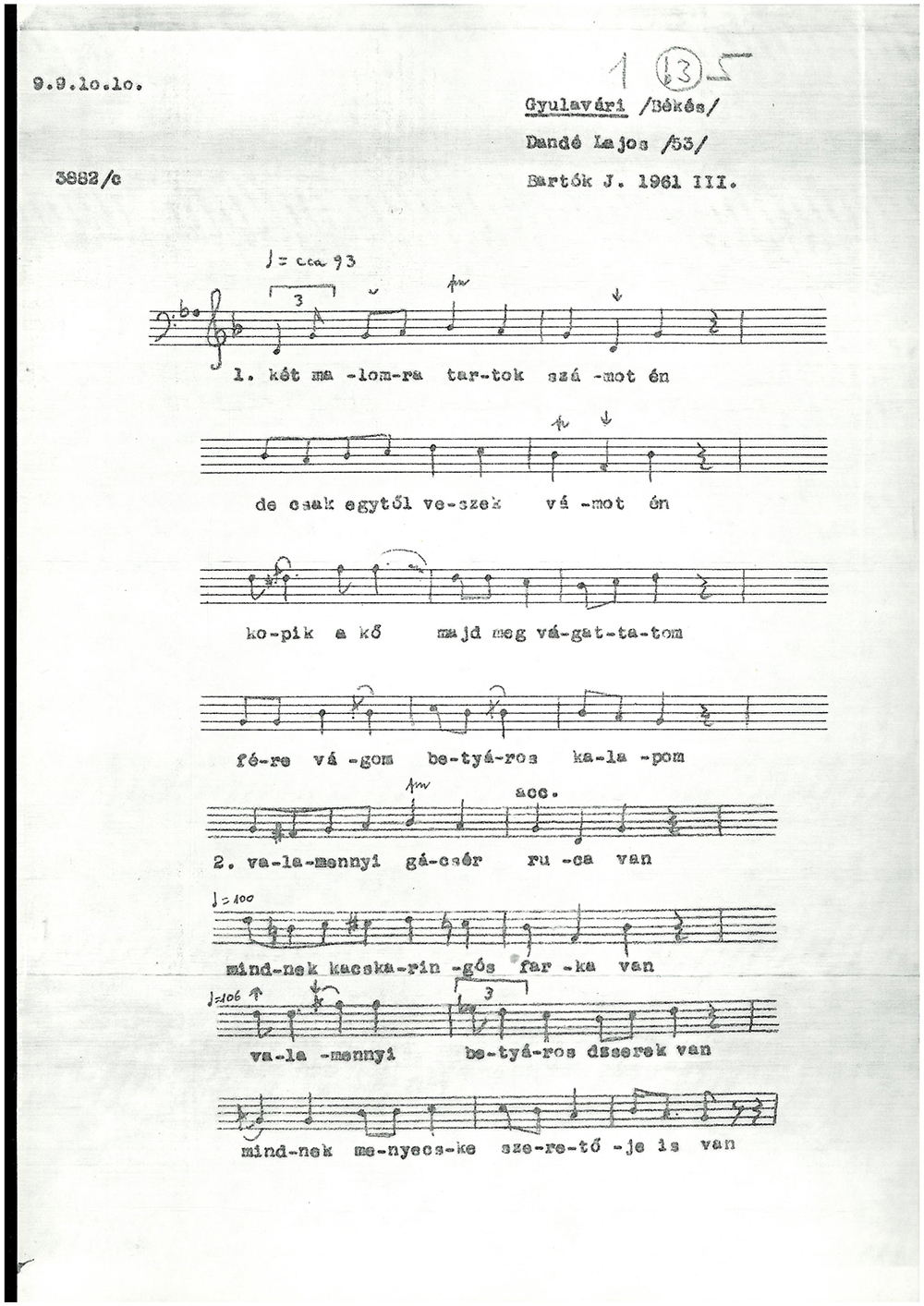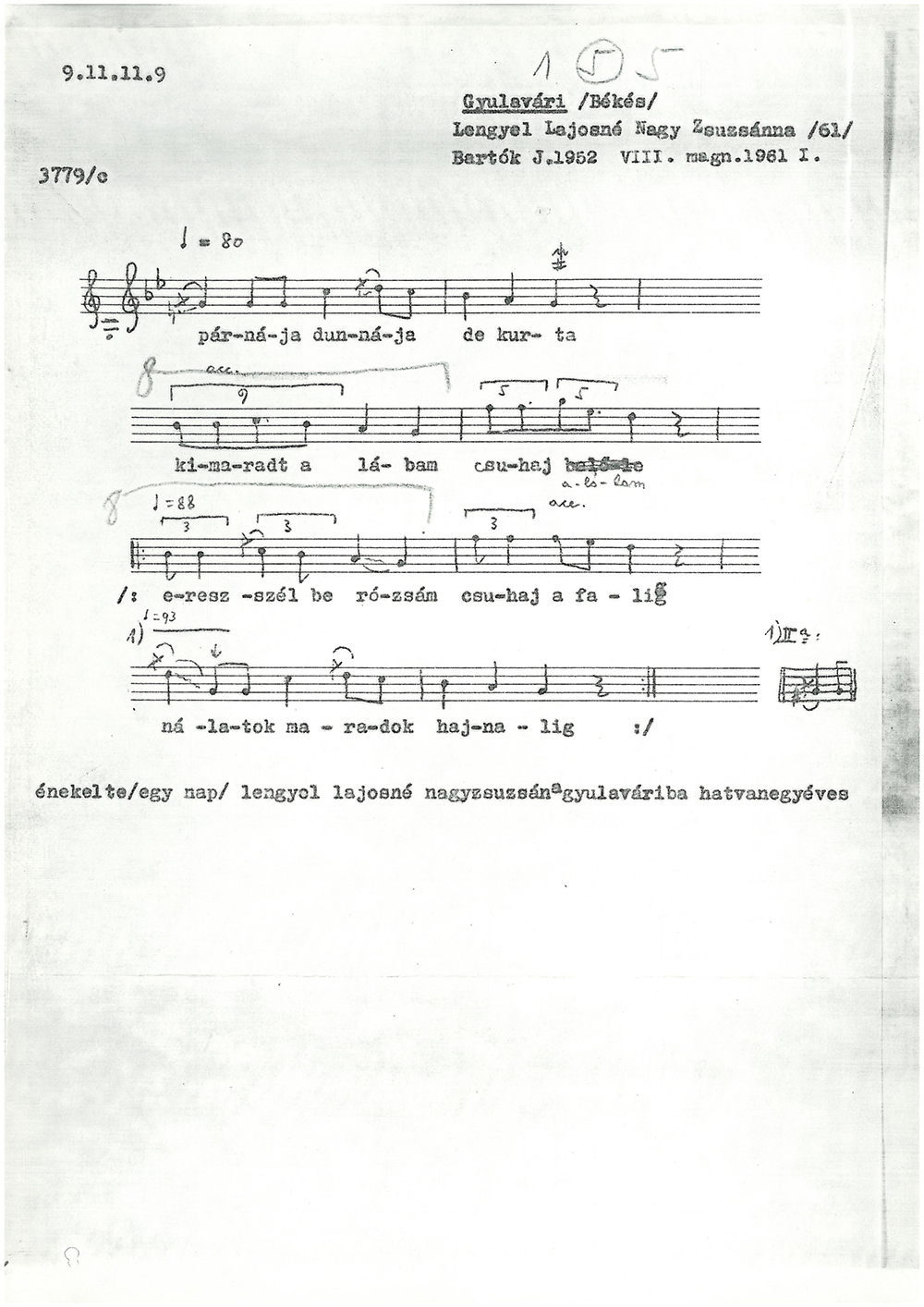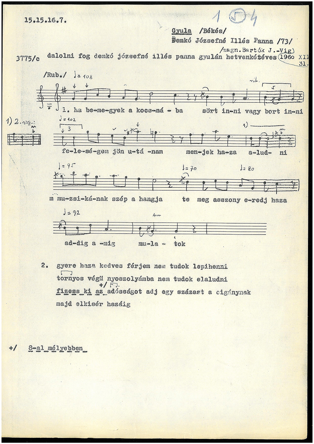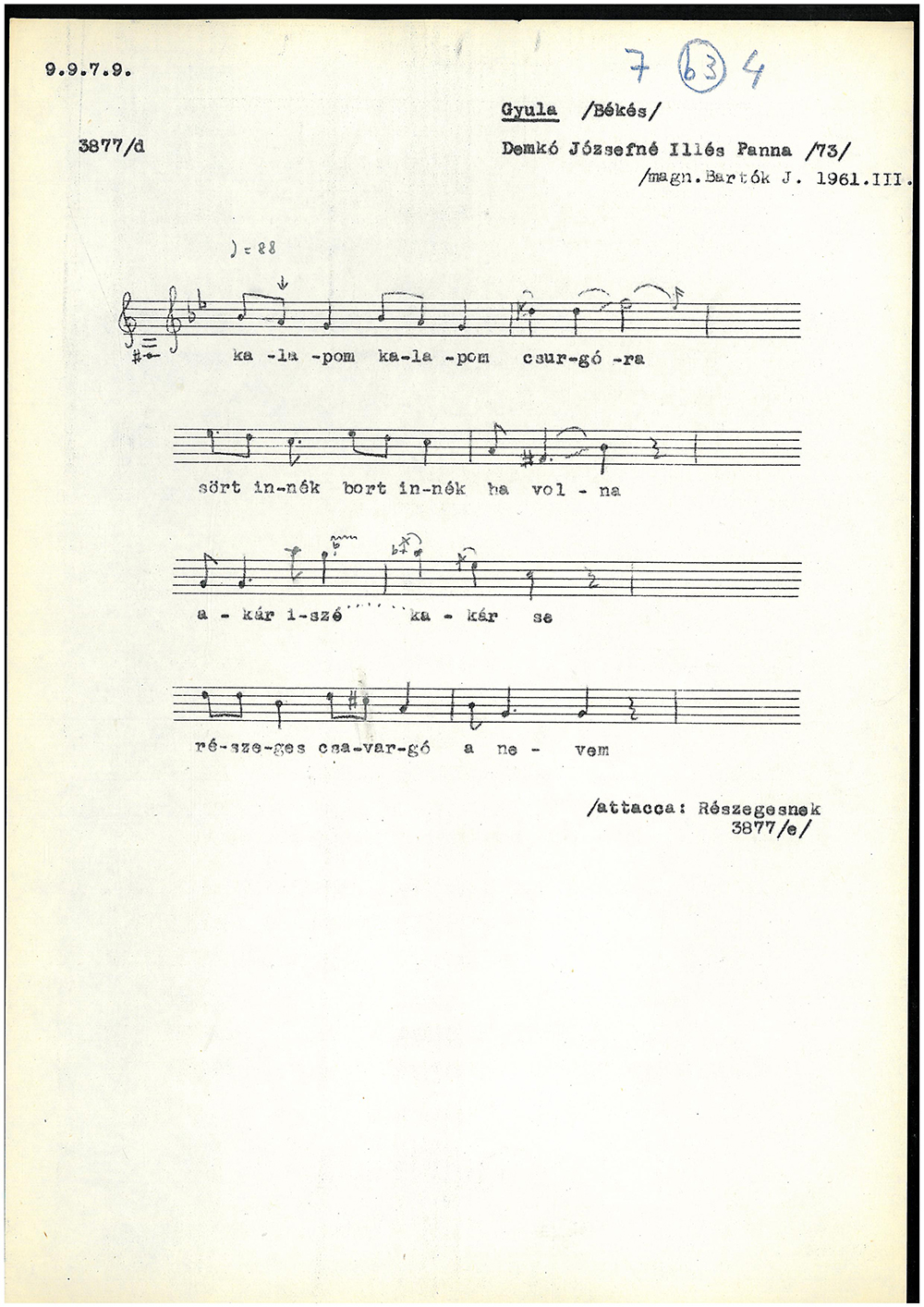 Részegesnek, csavargónak… MTA BTK Zenetudományi Intézet 1961.03.11 Bartók János Gyula Békés Demkó Józsefné Illés Panna   73 magyar