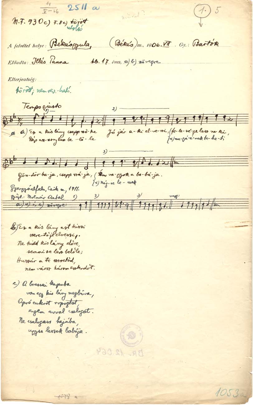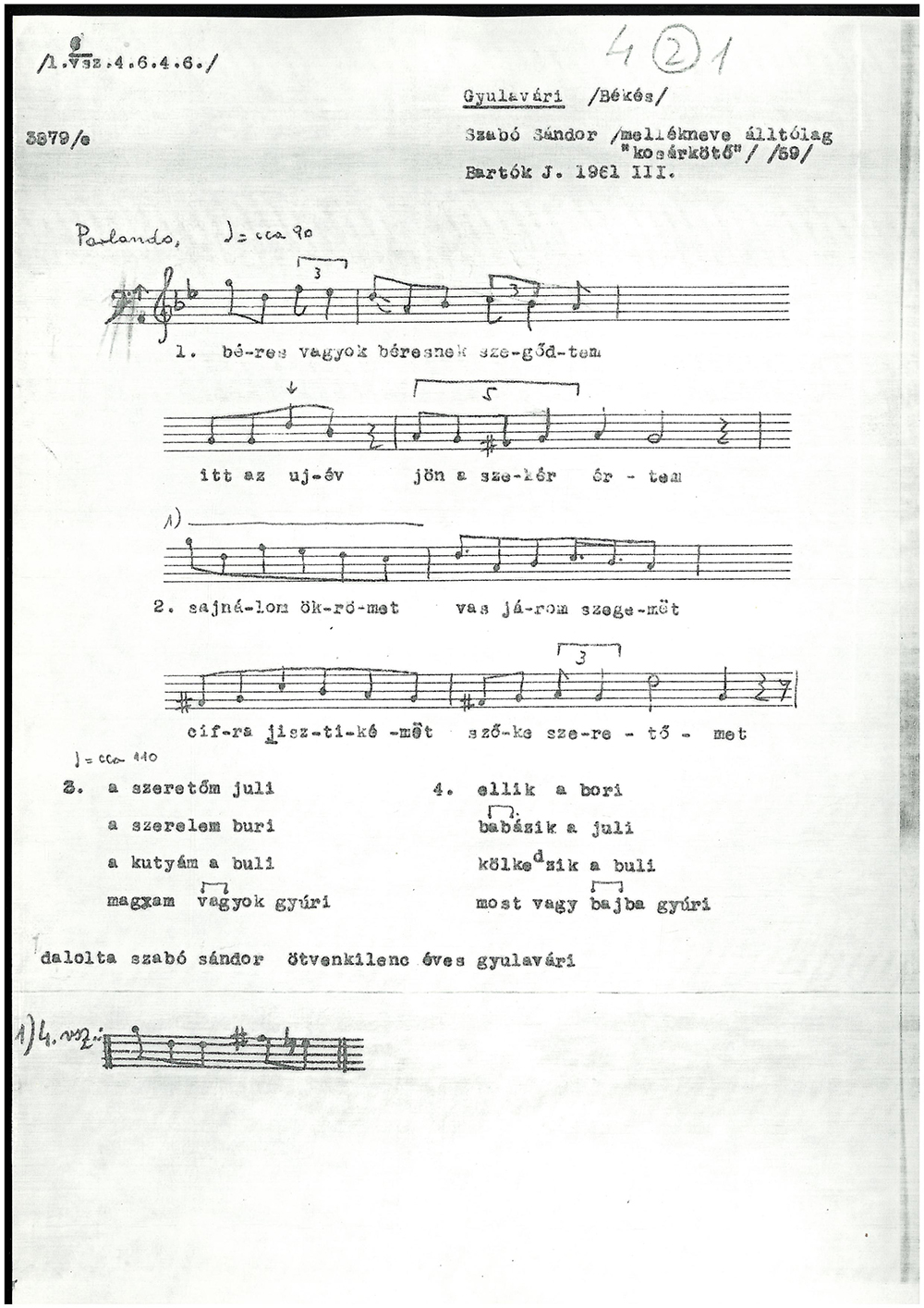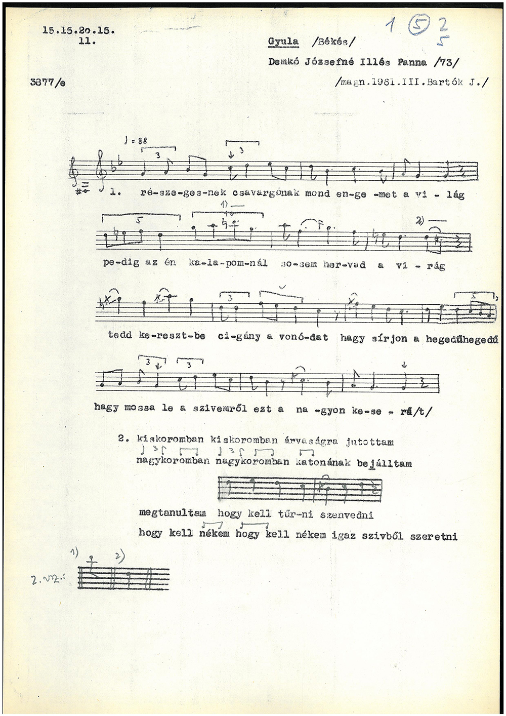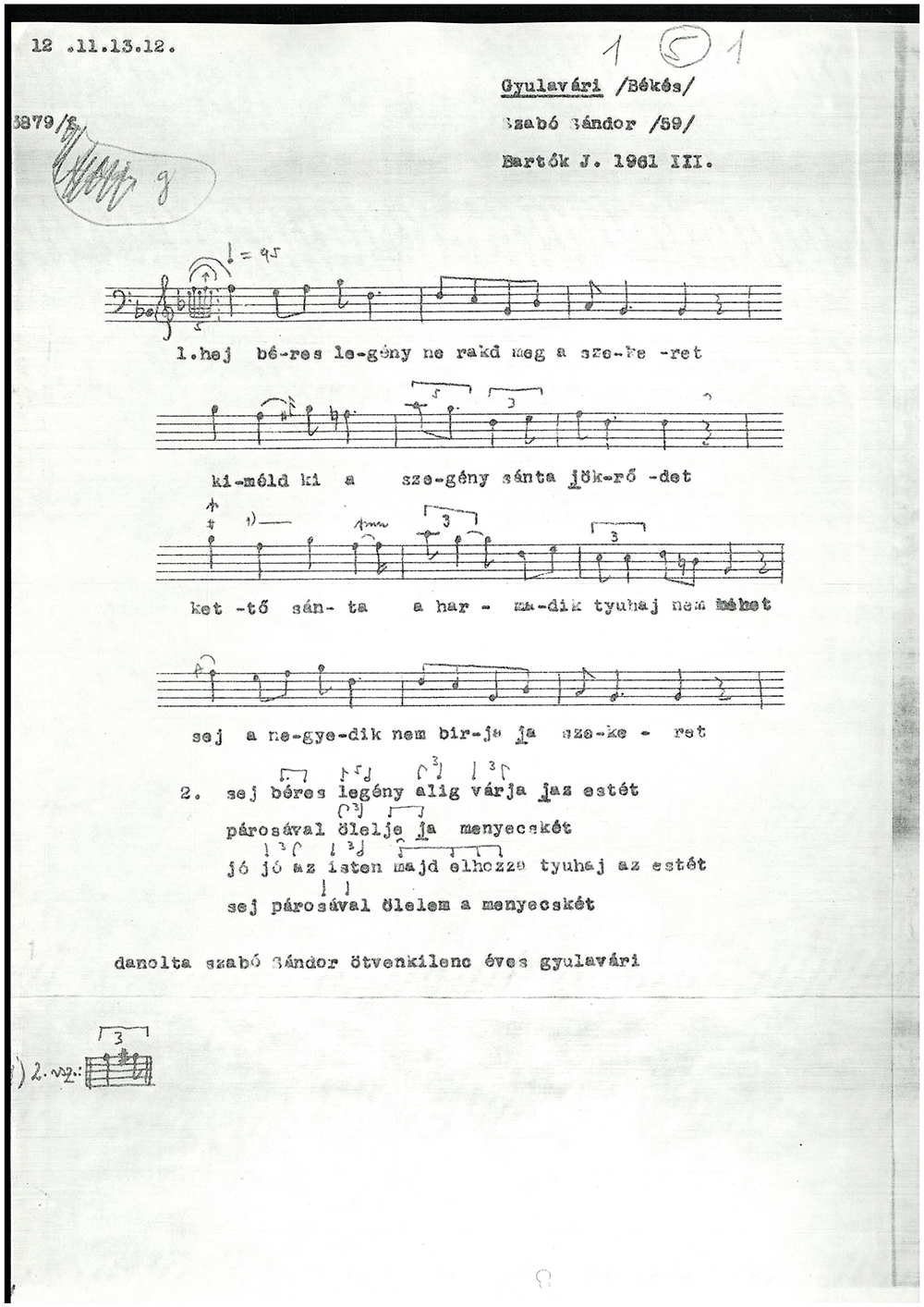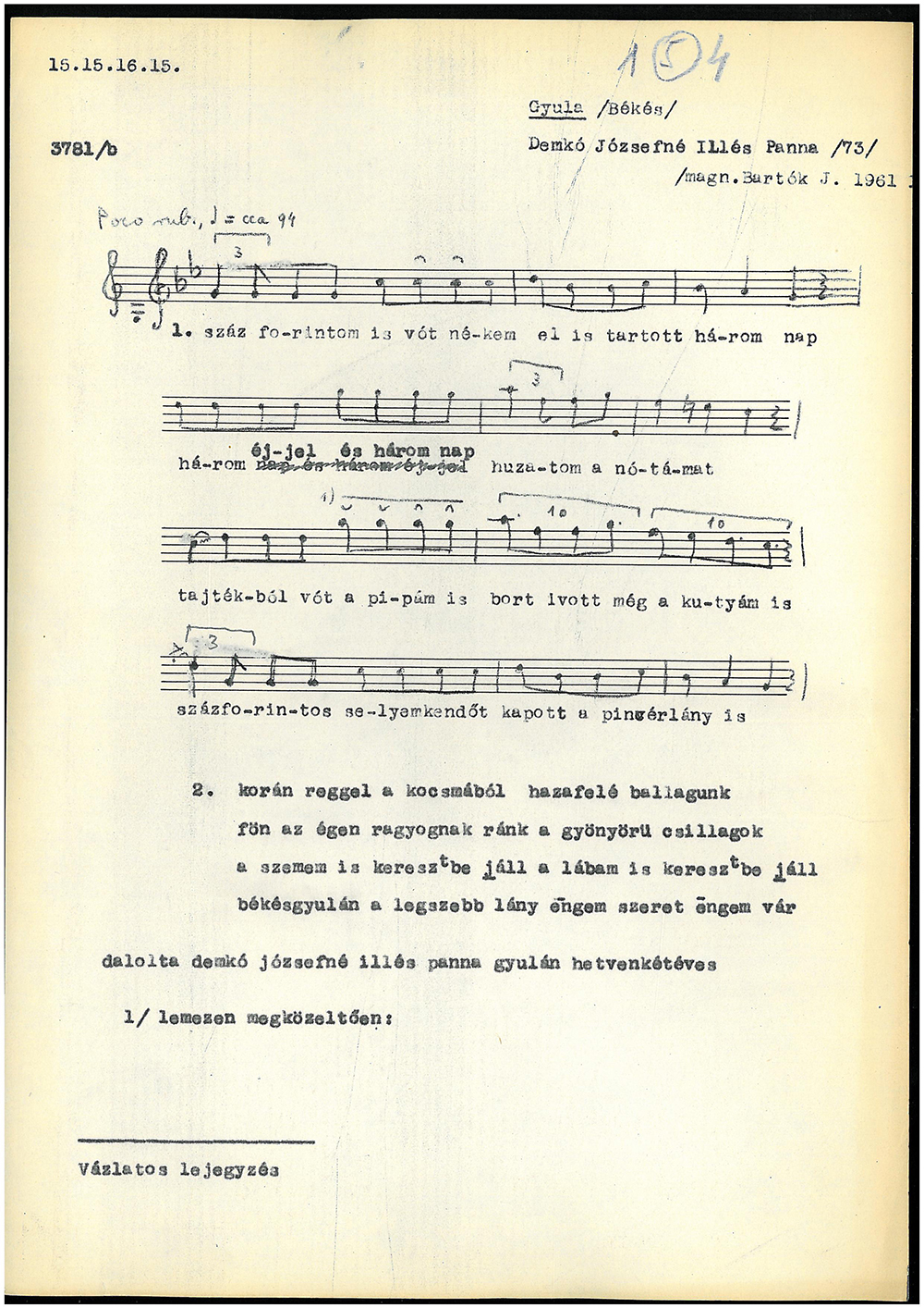 Részegesnek, csavargónak… MTA BTK Zenetudományi Intézet 1961.03.11 Bartók János Gyula Békés Demkó Józsefné Illés Panna   73 magyar
