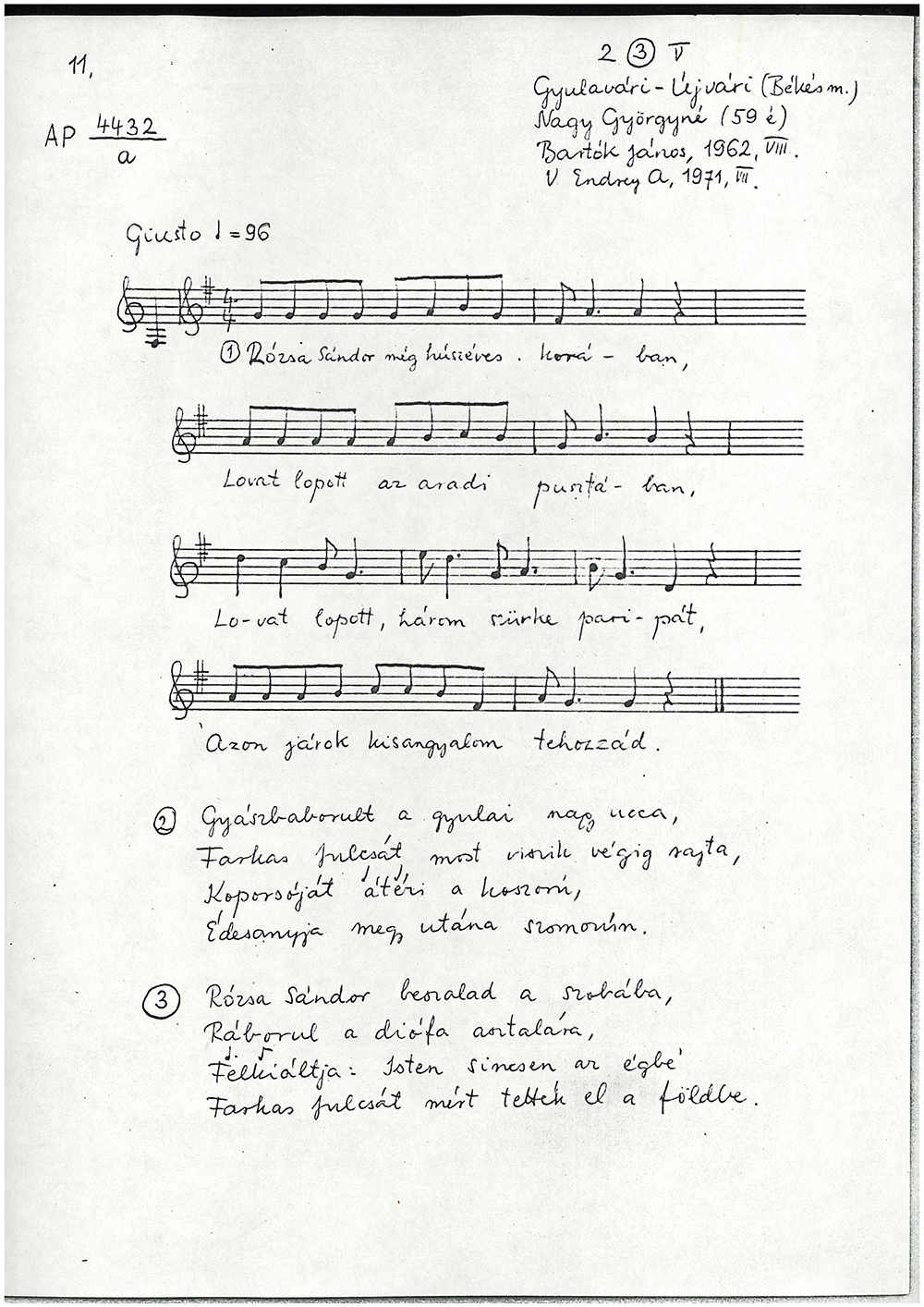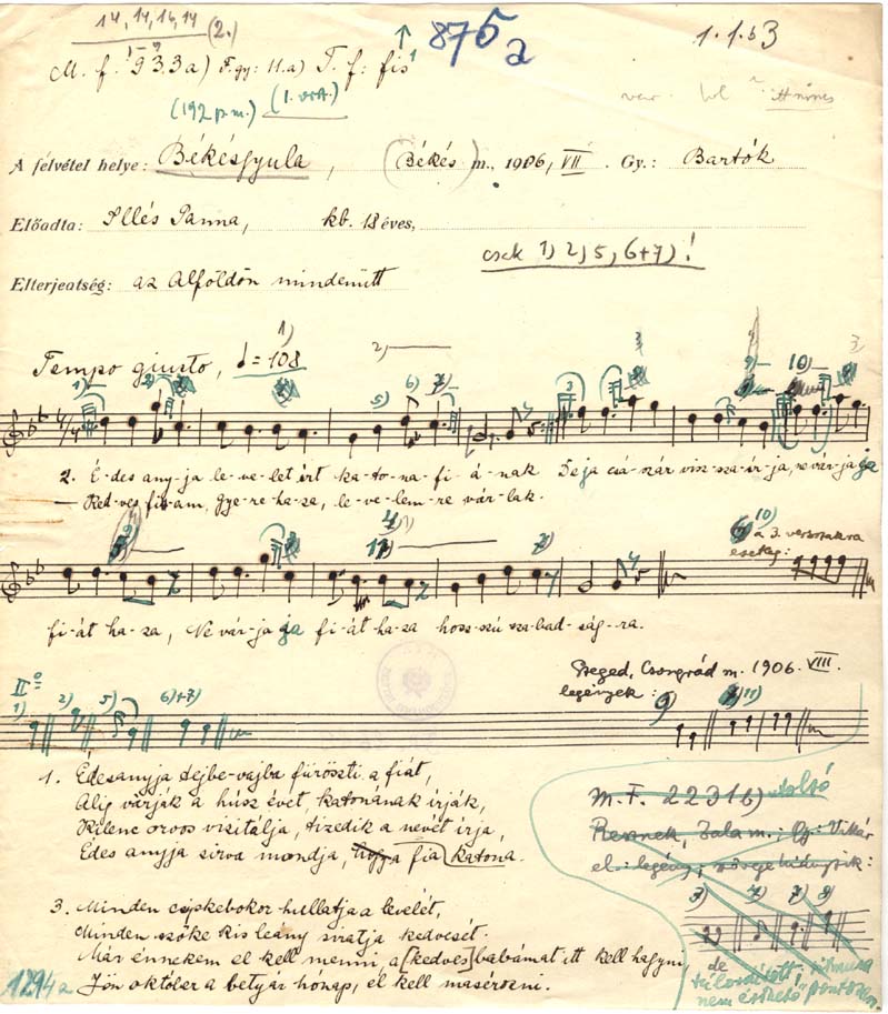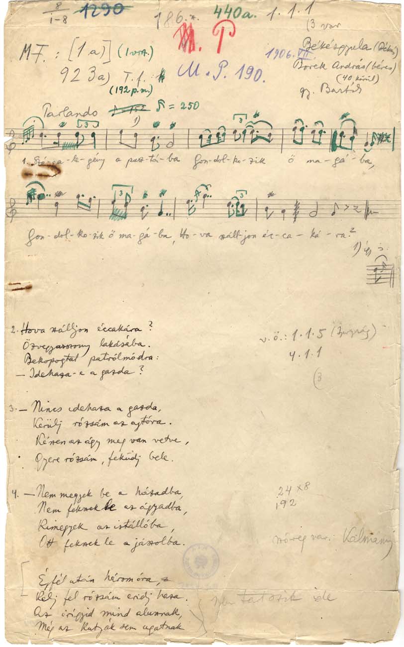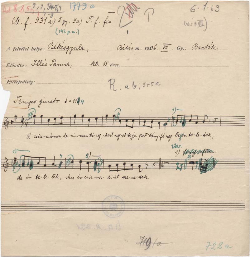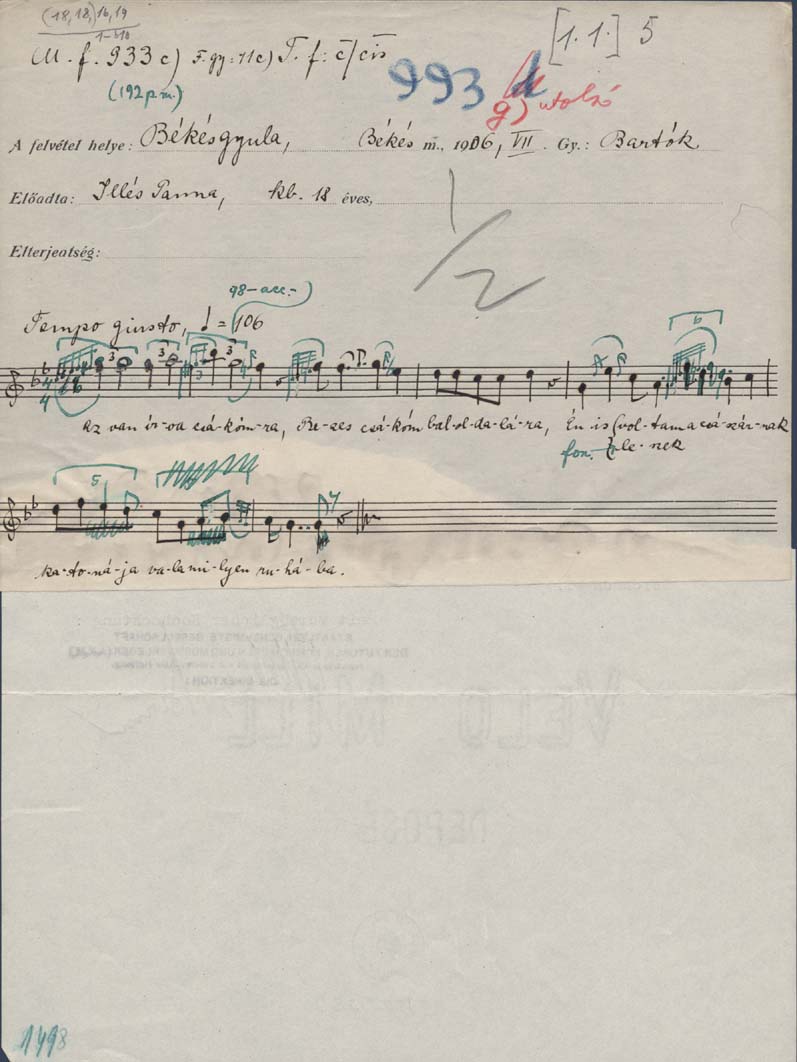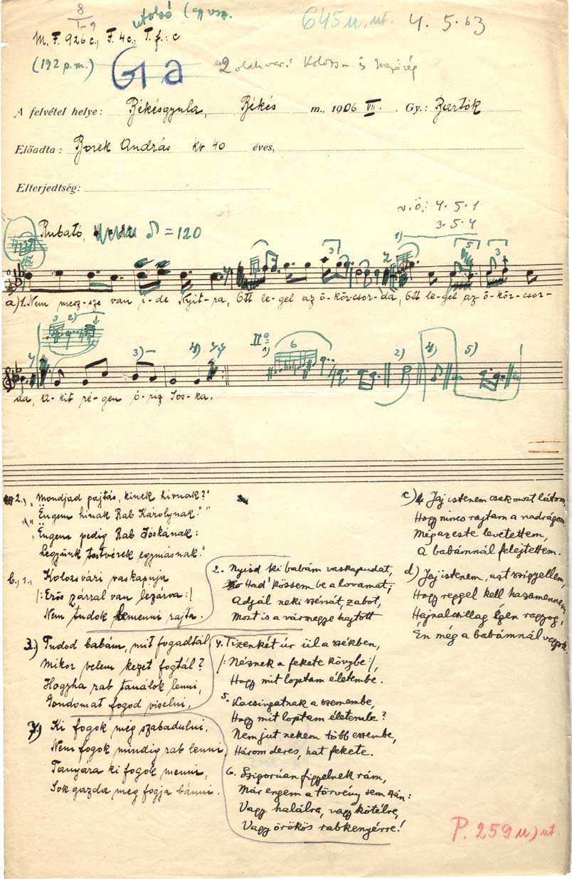 Részegesnek, csavargónak… MTA BTK Zenetudományi Intézet 1961.03.11 Bartók János Gyula Békés Demkó Józsefné Illés Panna   73 magyar