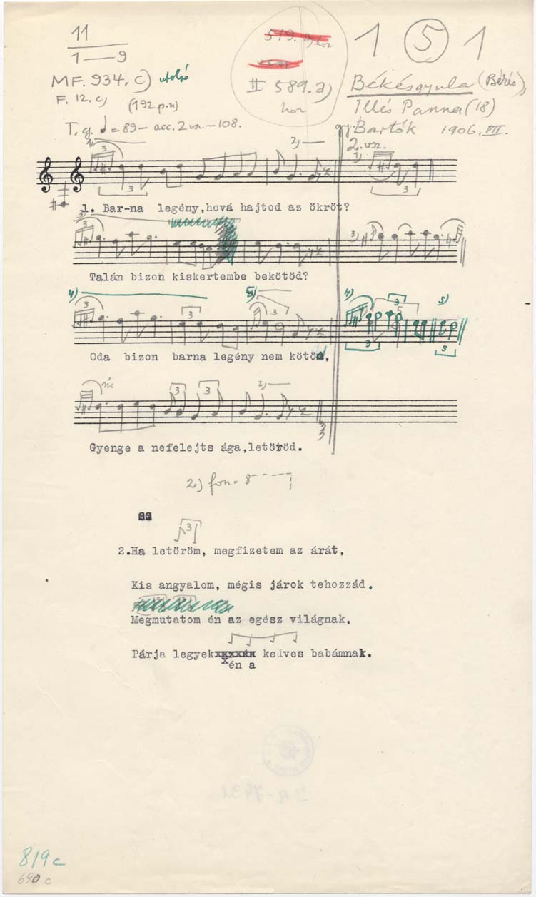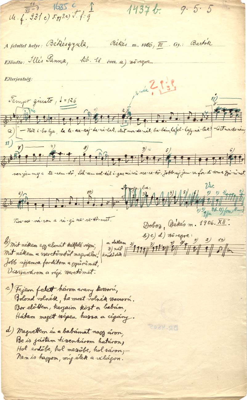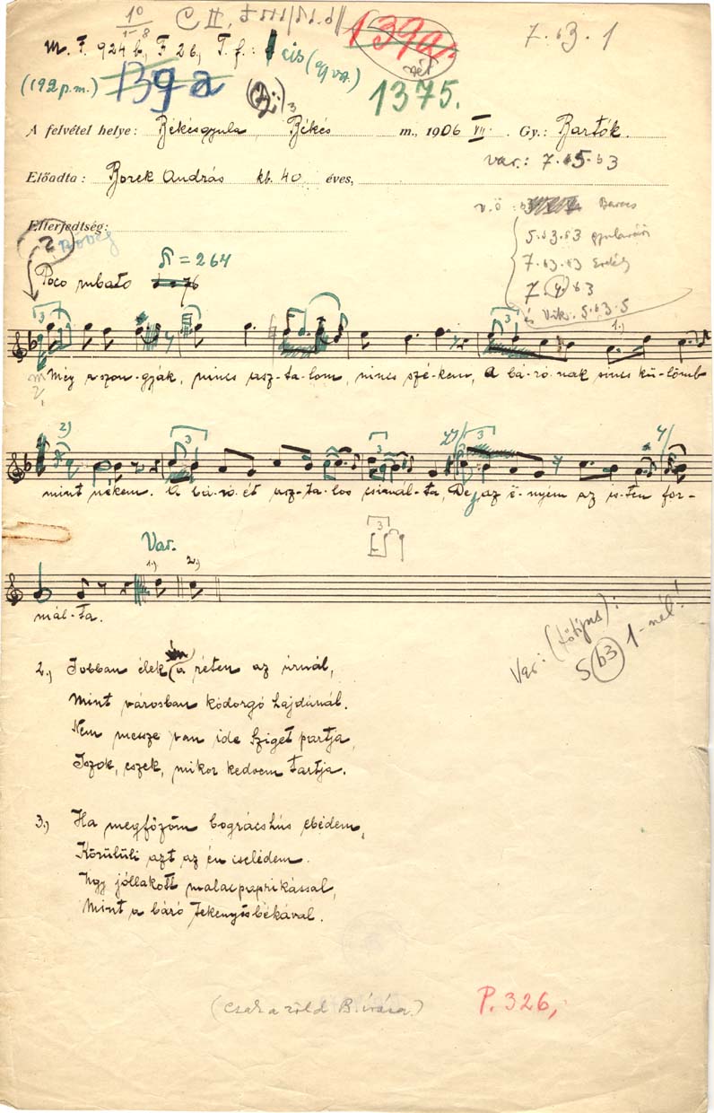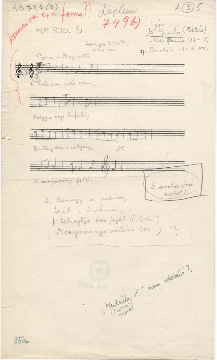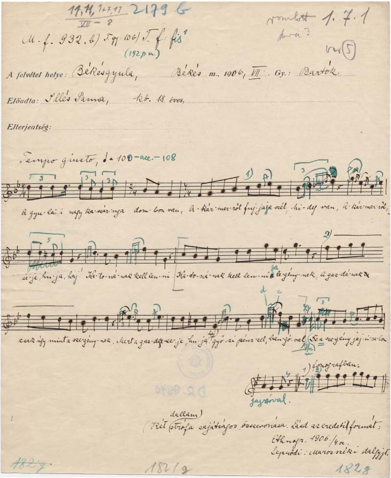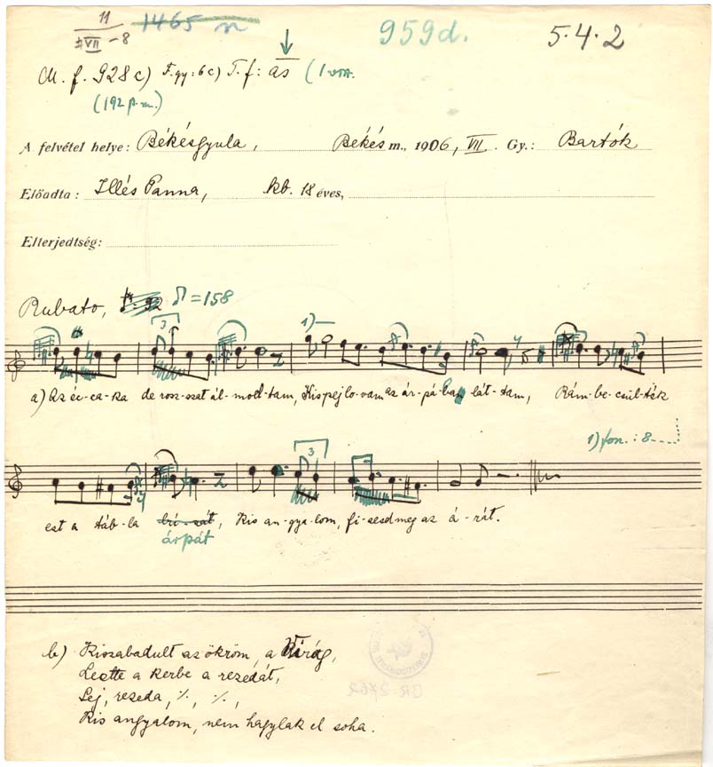 Részegesnek, csavargónak… MTA BTK Zenetudományi Intézet 1961.03.11 Bartók János Gyula Békés Demkó Józsefné Illés Panna   73 magyar