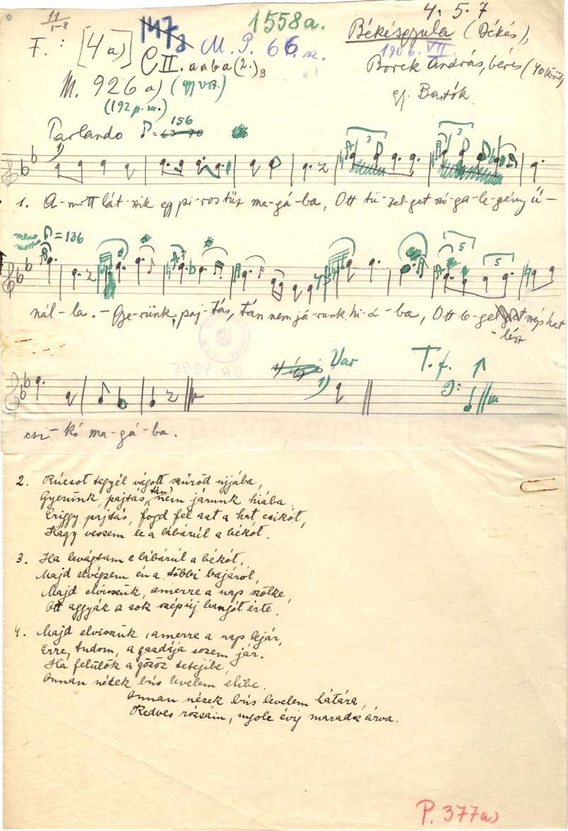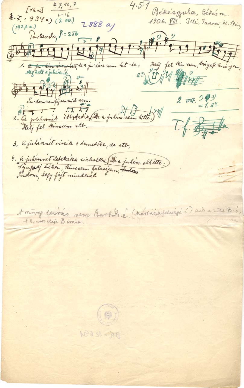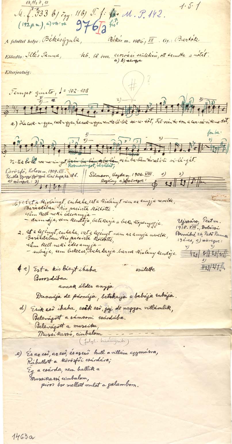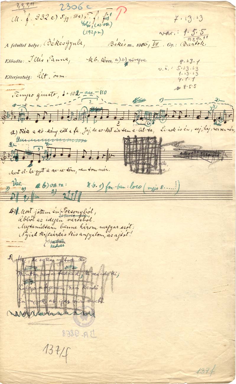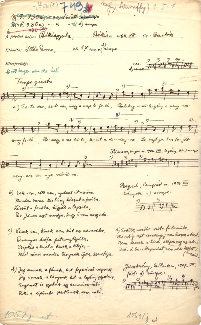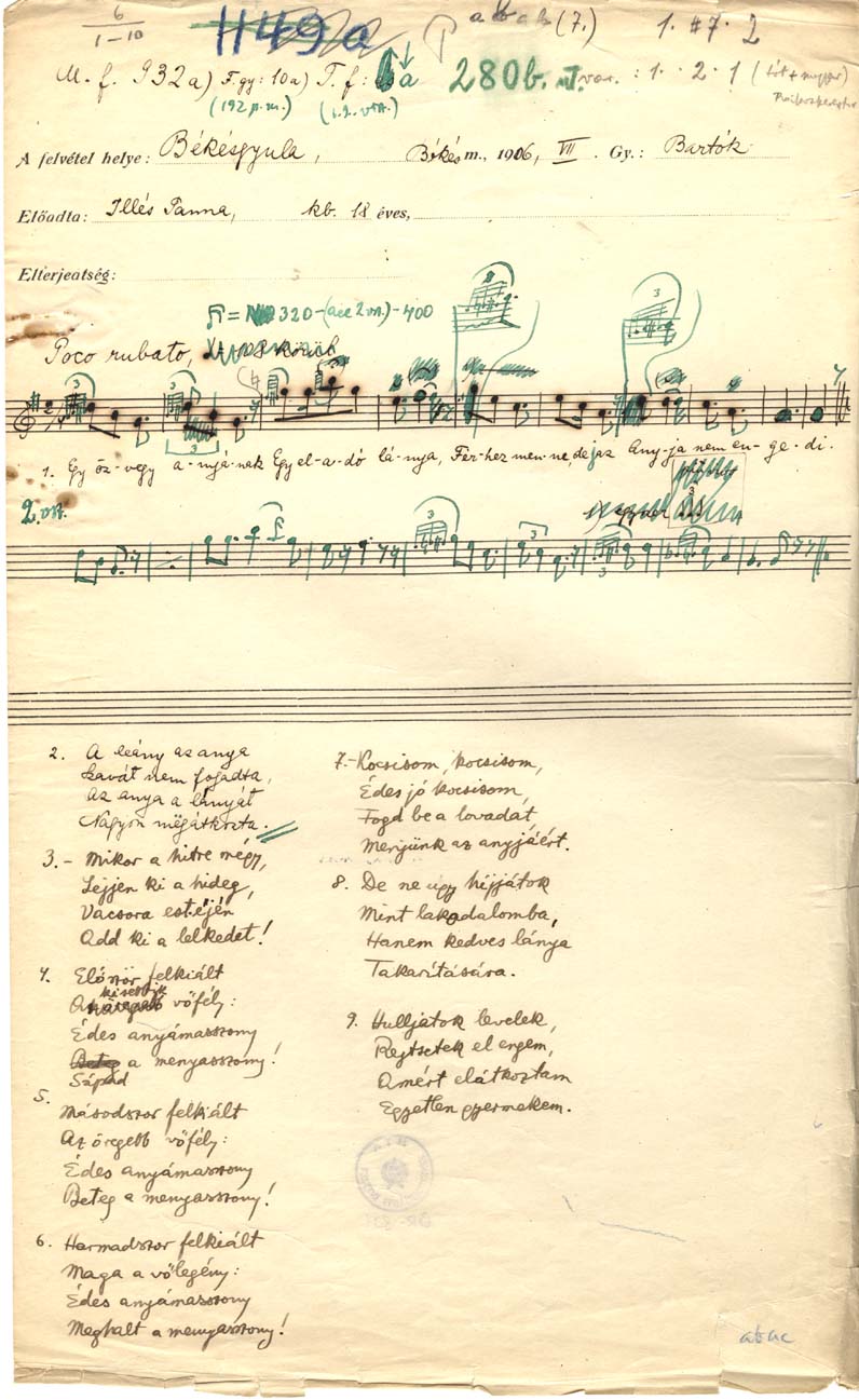 Részegesnek, csavargónak… MTA BTK Zenetudományi Intézet 1961.03.11 Bartók János Gyula Békés Demkó Józsefné Illés Panna   73 magyar