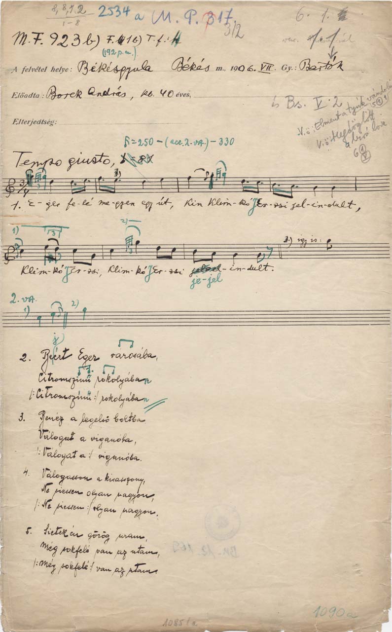 Eger felé megyen egy út Néprajzi Múzeum 1906 Bartók Béla Gyula Békés Borek András béres 1865~   magyar