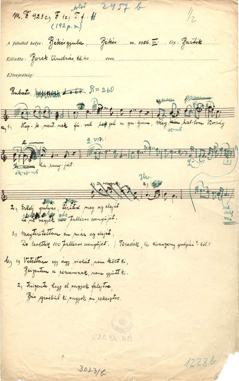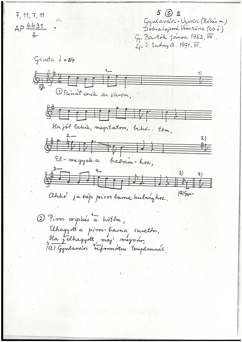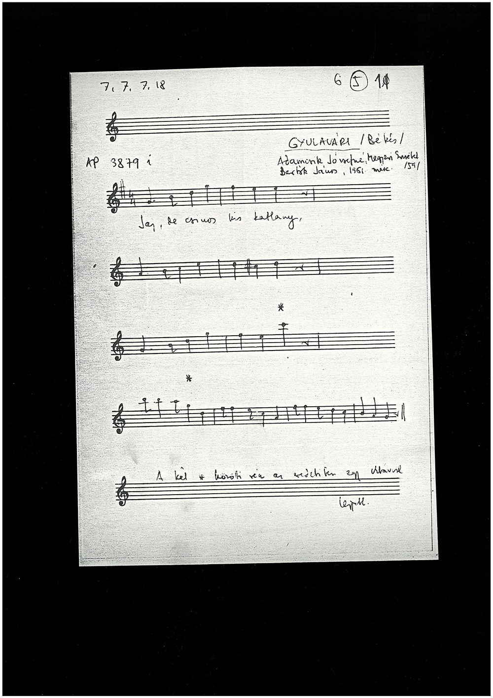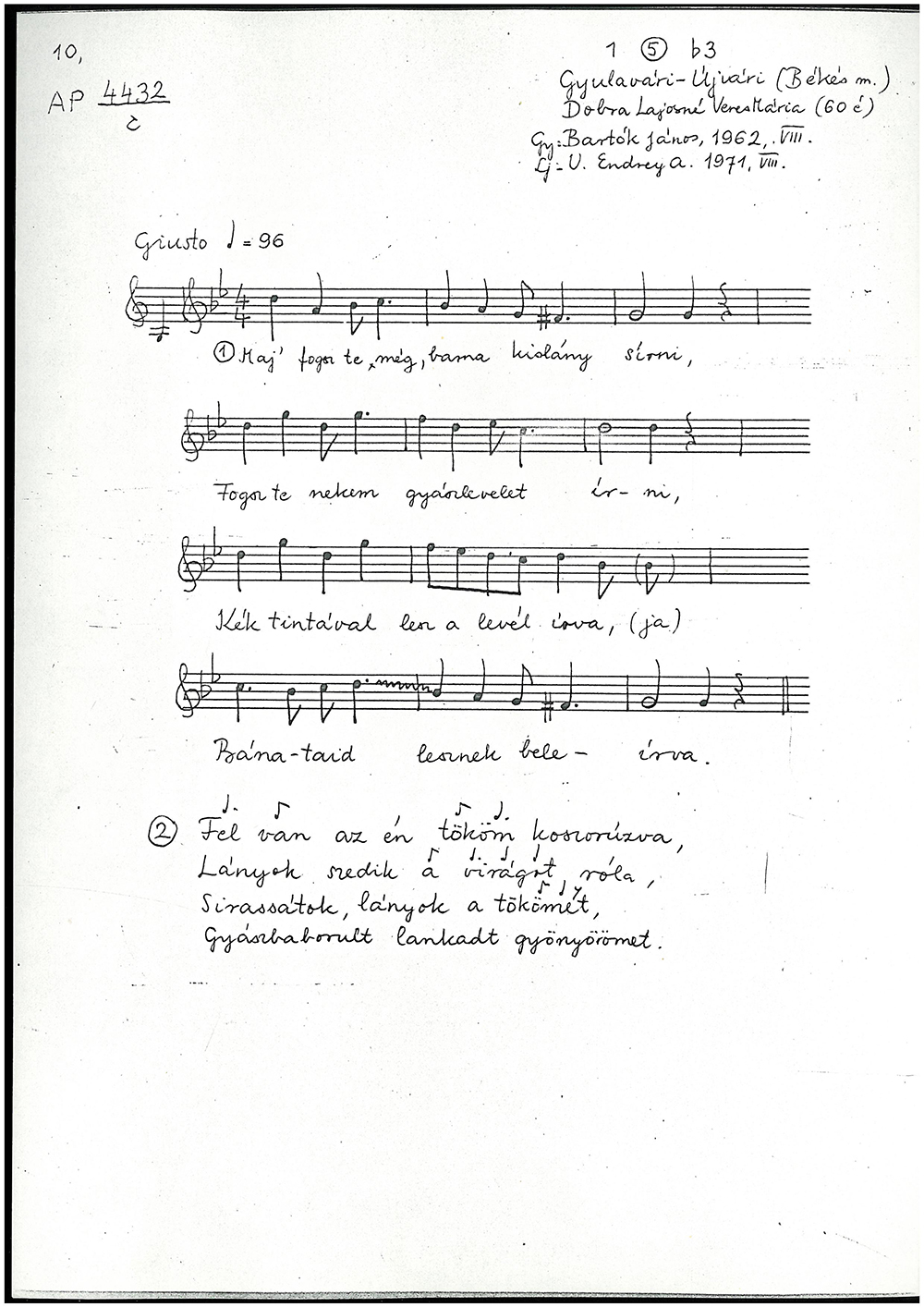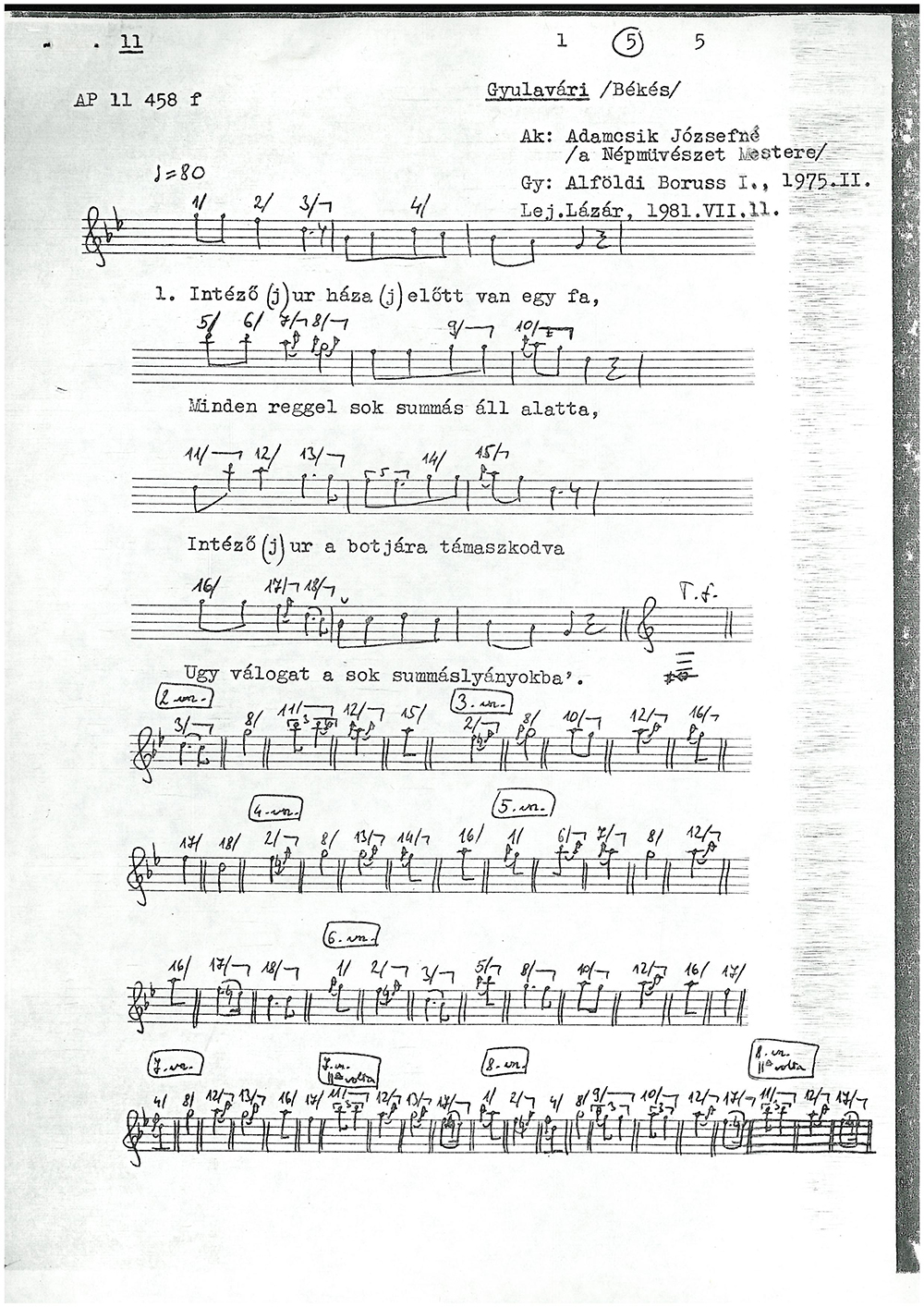 Kavicsos kútnál kinyílt liliomszál MTA BTK Zenetudományi Intézet 1961.03.19 Bartók János Gyulavári Békés Nagy Györgyné Tóth Margit   58 magyar