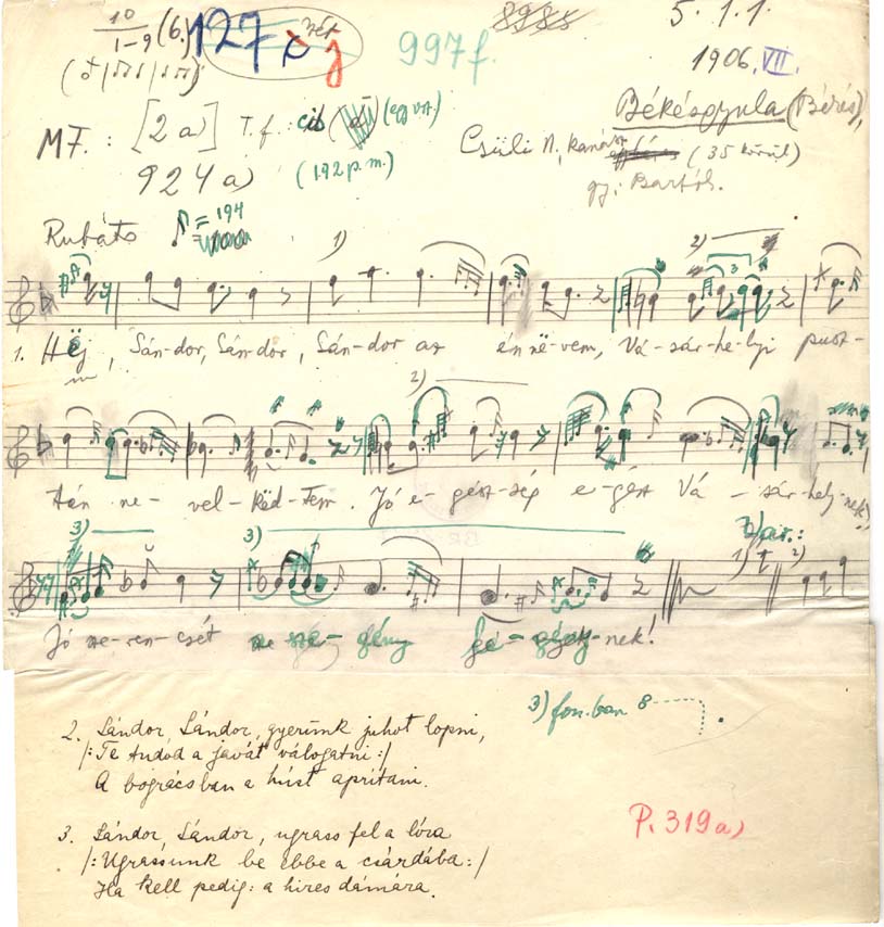 Hej, Sándor, Sándor, Sándor az én nevem Néprajzi Múzeum 1906 Bartók Béla Gyula Békés Csüli N. kanász 1870~   magyar