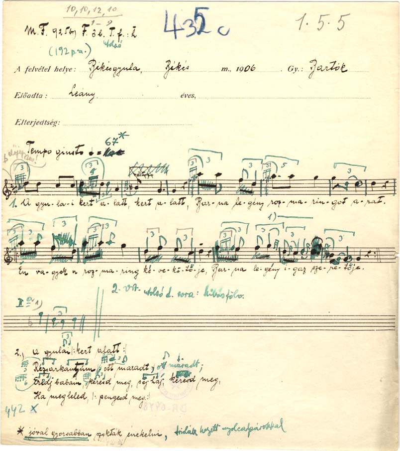 - Kék ibolya, ha leszakajtanálak MTA BTK Zenetudományi Intézet 1967.10.19 Olsvai Imre Gyula Békés özv. Sebestyén Pálné Gombos Erzsébet   60 magyar