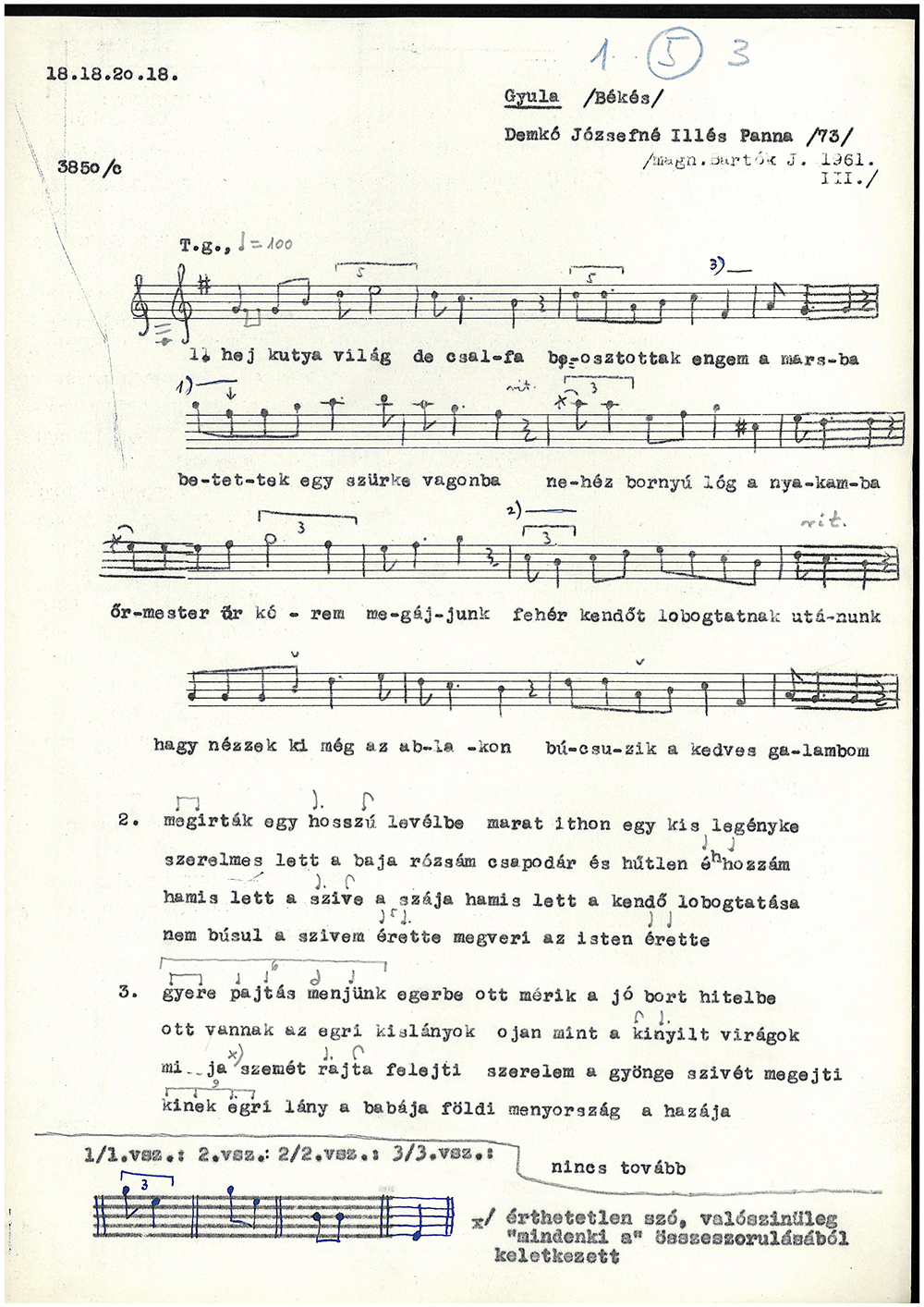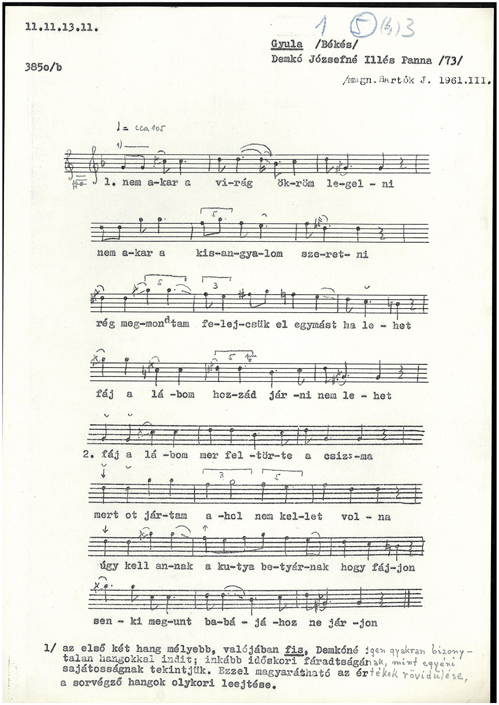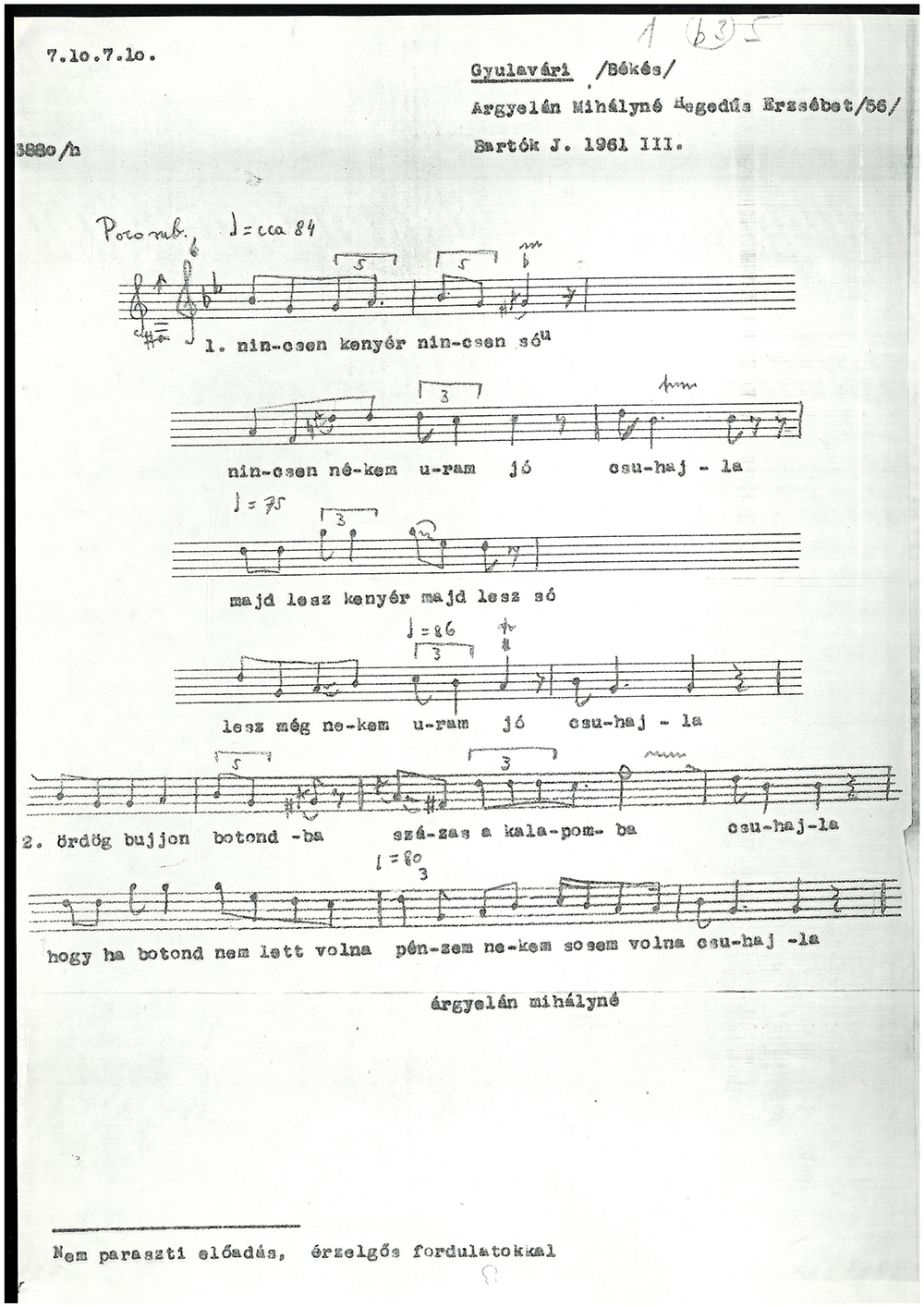 Hej kutya világ de csalfa beosztottak engem MTA BTK Zenetudományi Intézet 1961.03.11 Bartók János Gyula Békés Demkó Józsefné Illés Panna   73 magyar