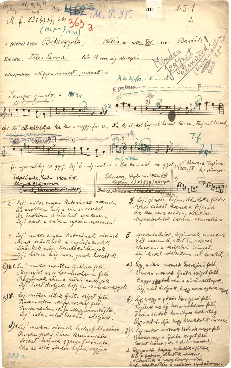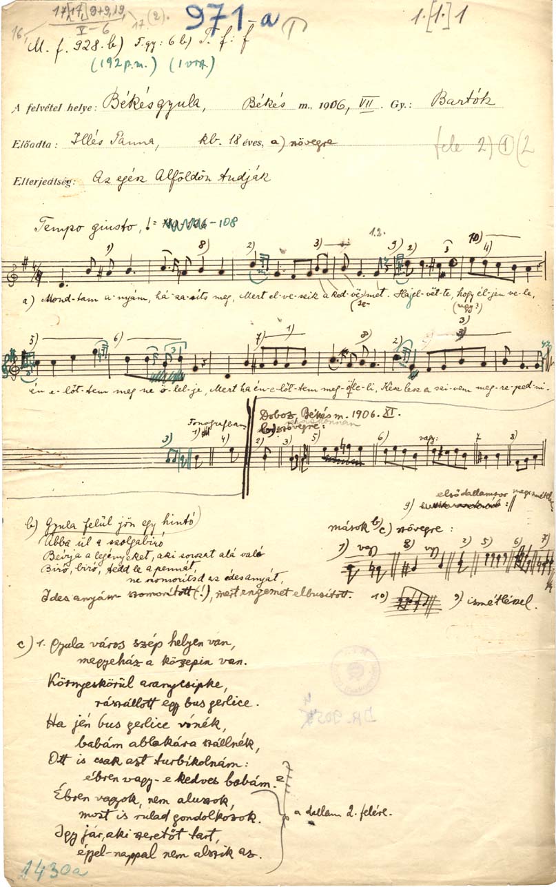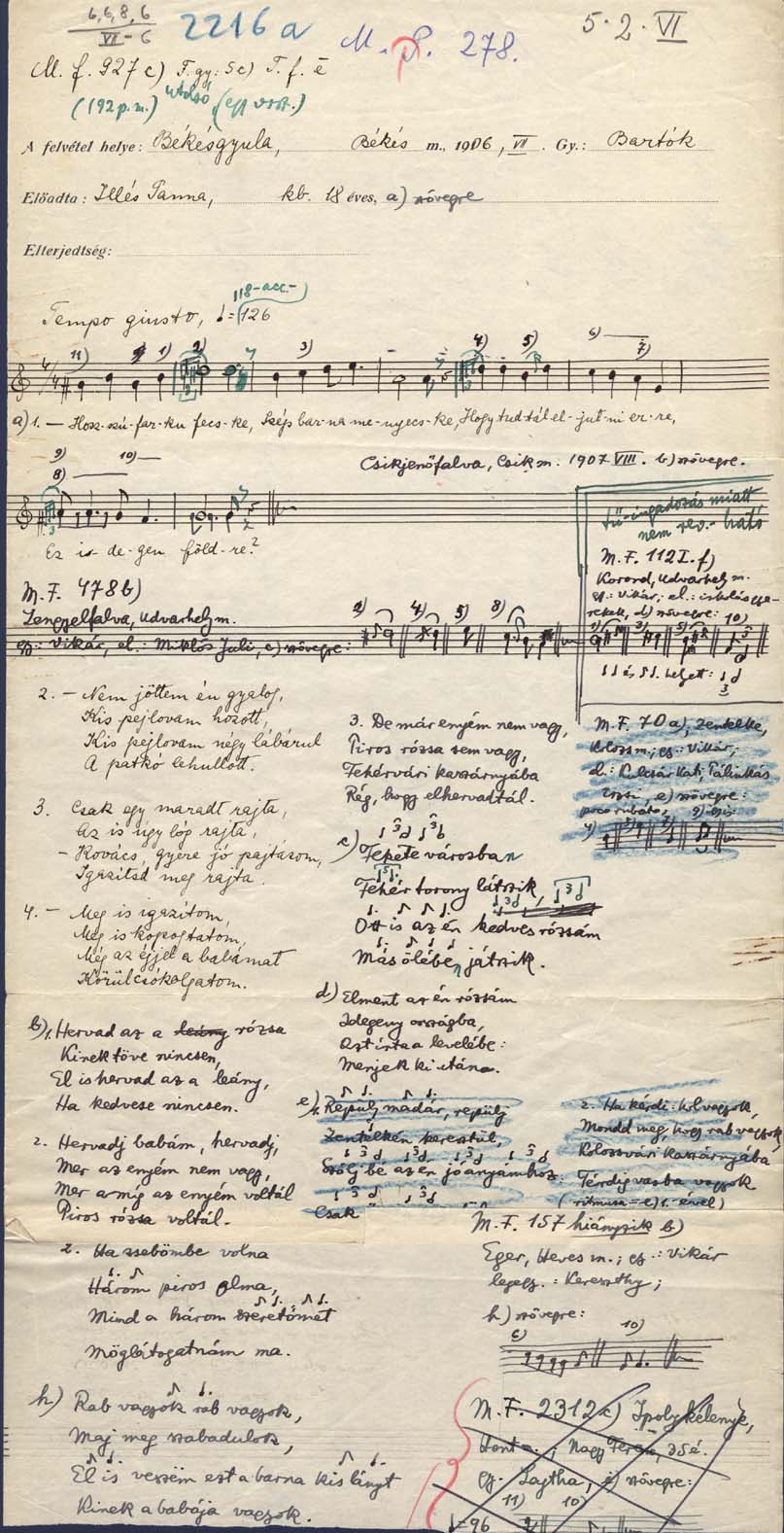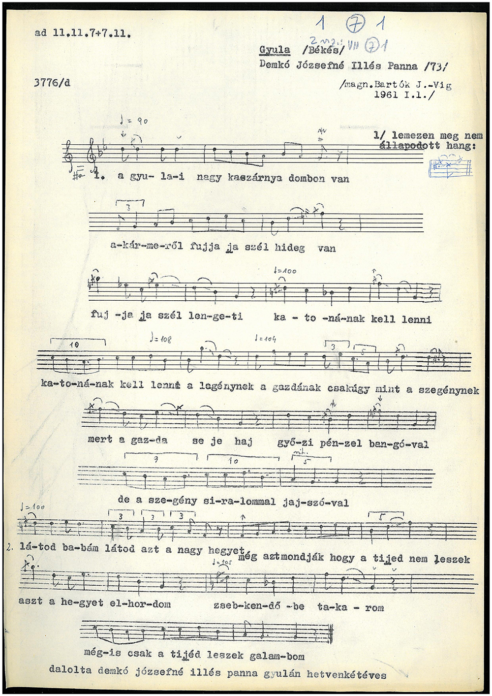 Hej kutya világ de csalfa beosztottak engem MTA BTK Zenetudományi Intézet 1961.03.11 Bartók János Gyula Békés Demkó Józsefné Illés Panna   73 magyar