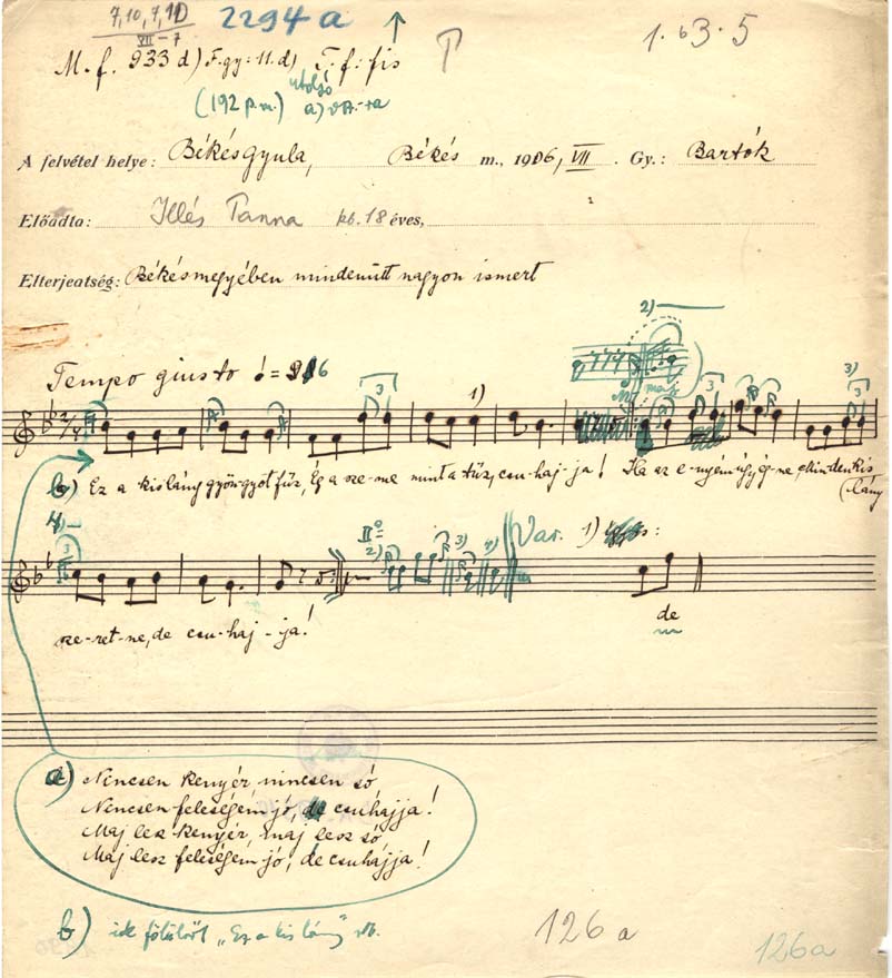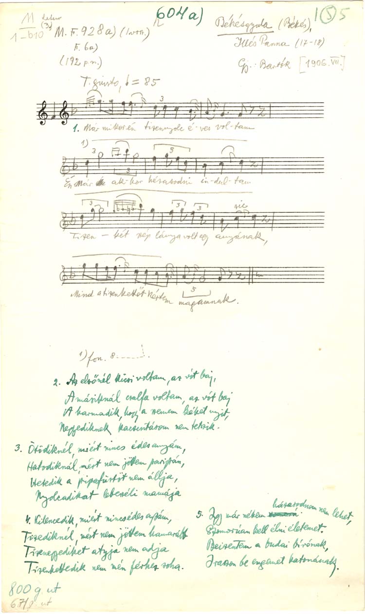 Kék ibolya, ha leszakajtanálak Néprajzi Múzeum 1906 Bartók Béla Gyula Békés Illés Panna (Demkó Józsefné) 1888   magyar