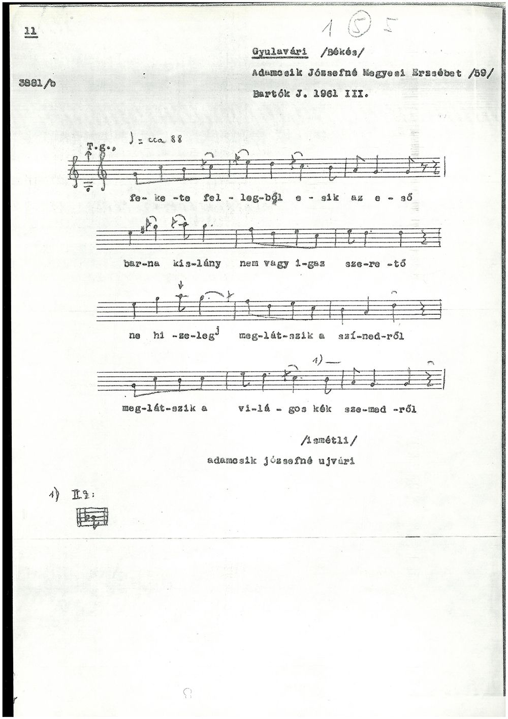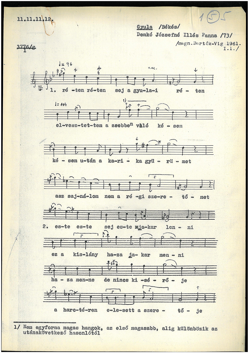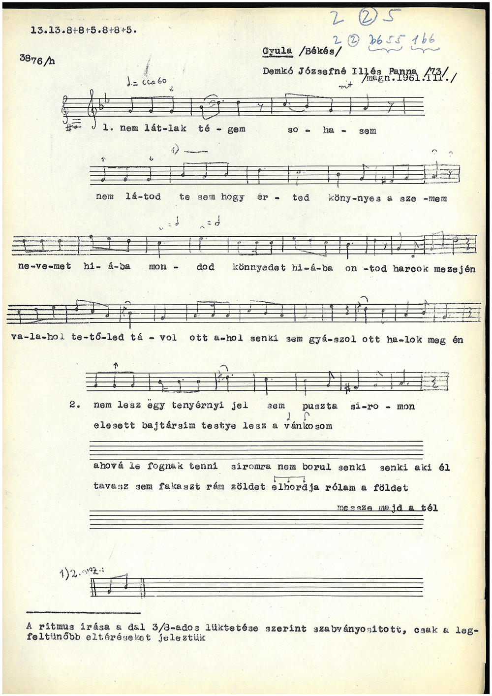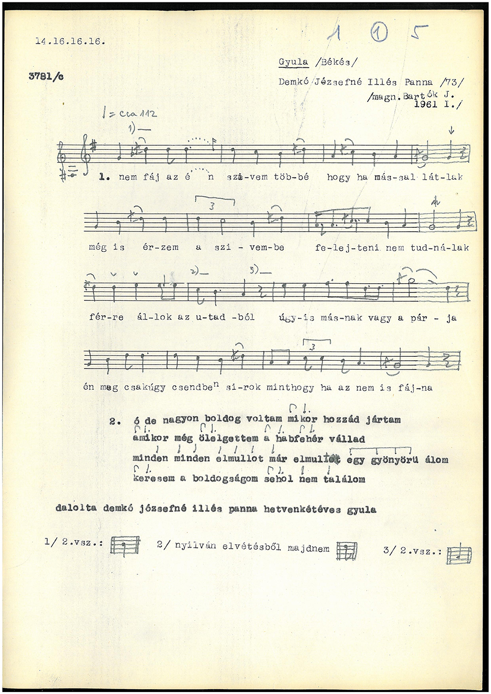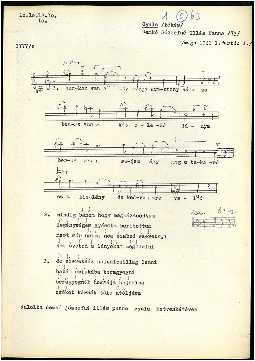 Nem látlak téged sohasem MTA BTK Zenetudományi Intézet 1961.03.11 Bartók János Gyula Békés Demkó Józsefné Illés Panna   73 magyar