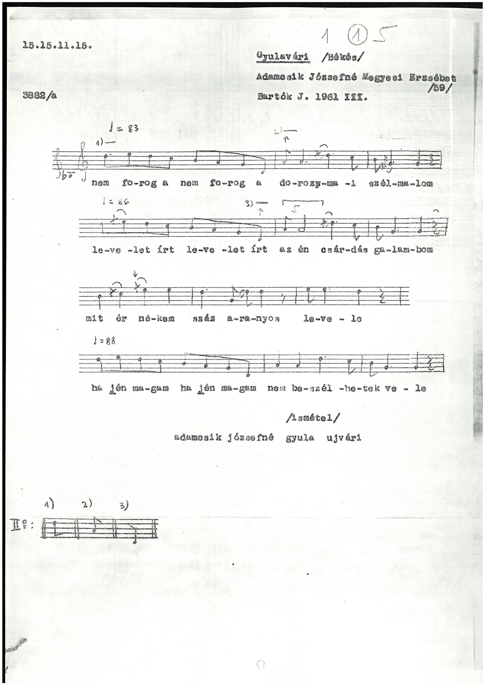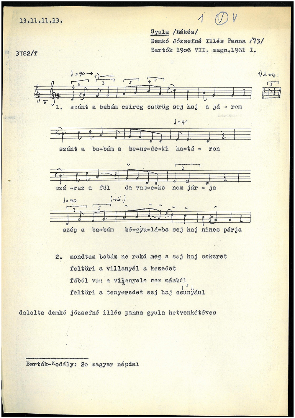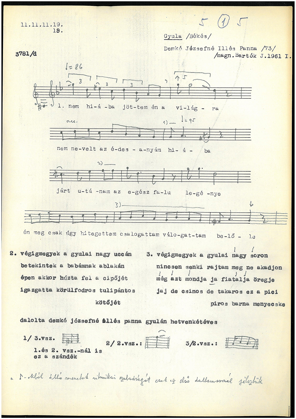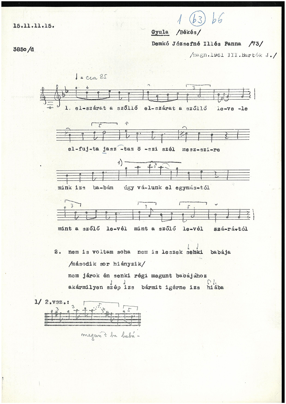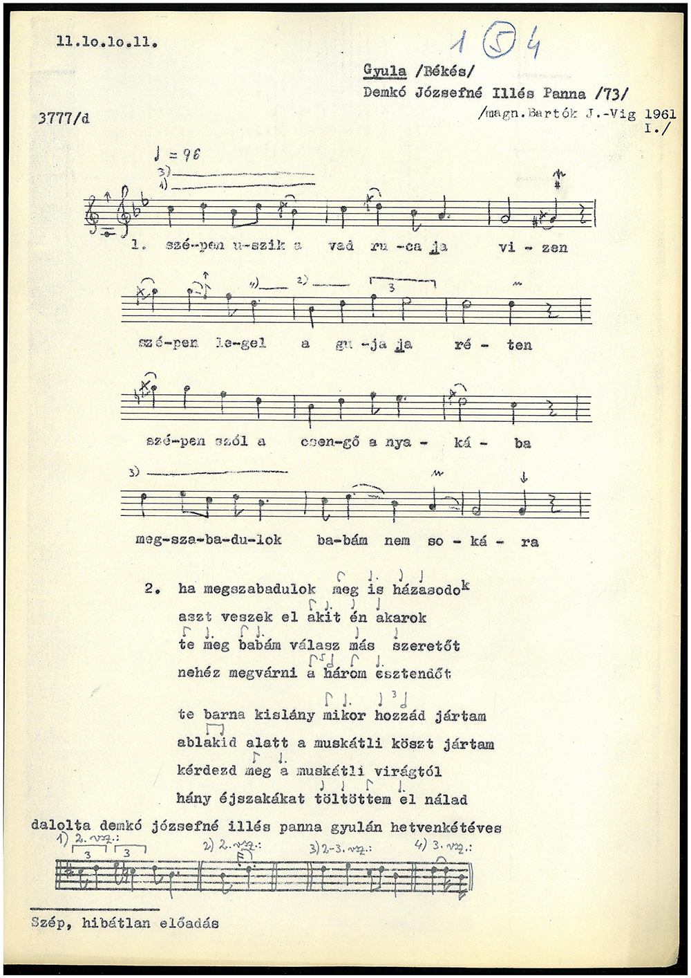 Nem látlak téged sohasem MTA BTK Zenetudományi Intézet 1961.03.11 Bartók János Gyula Békés Demkó Józsefné Illés Panna   73 magyar