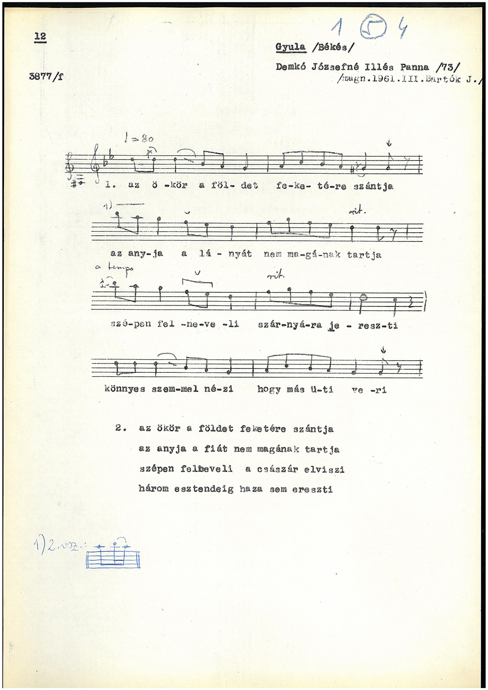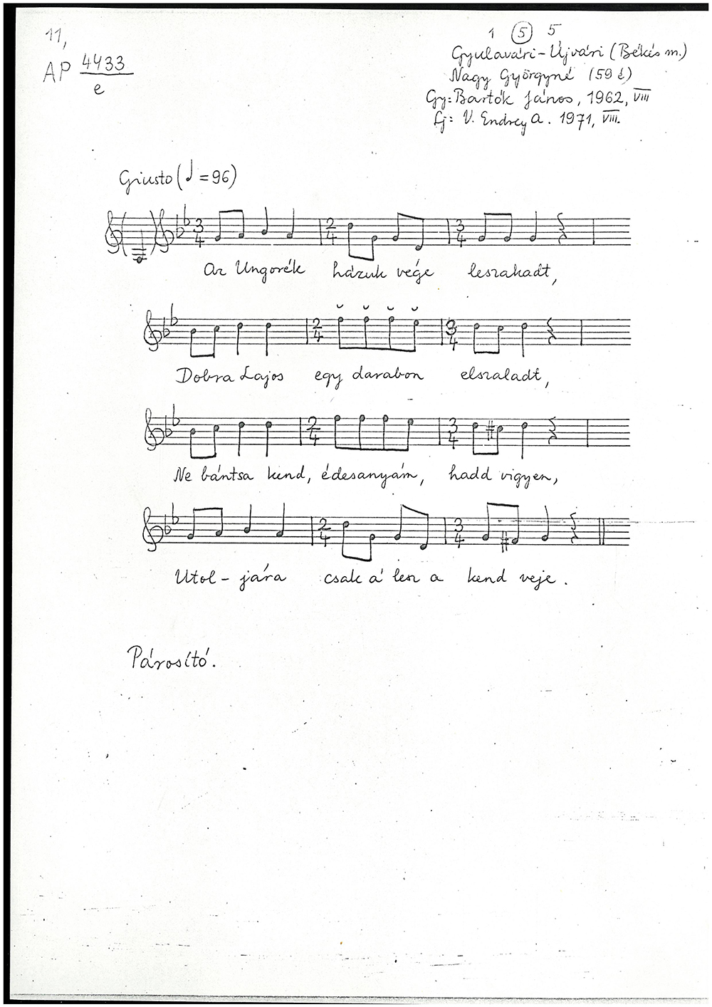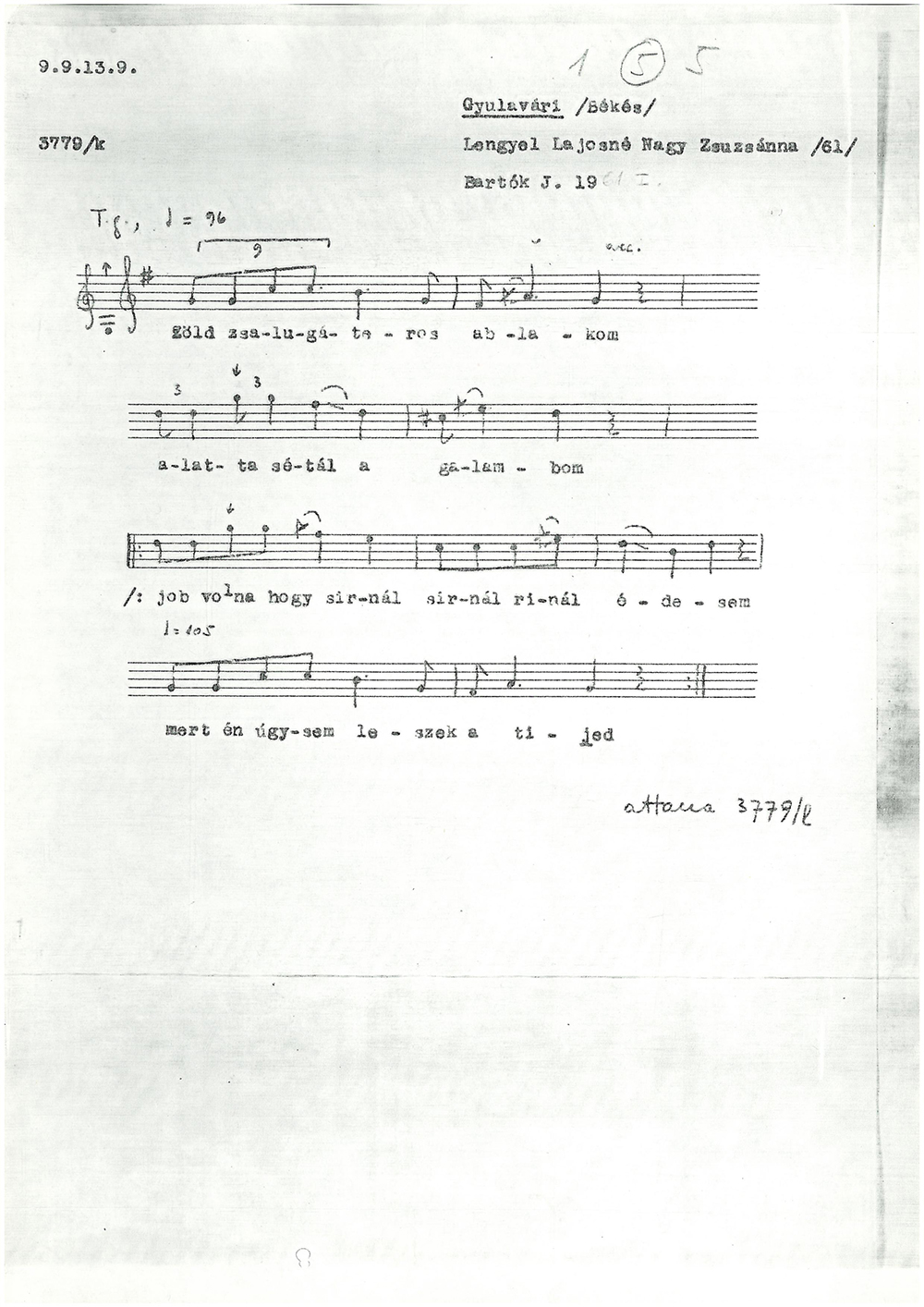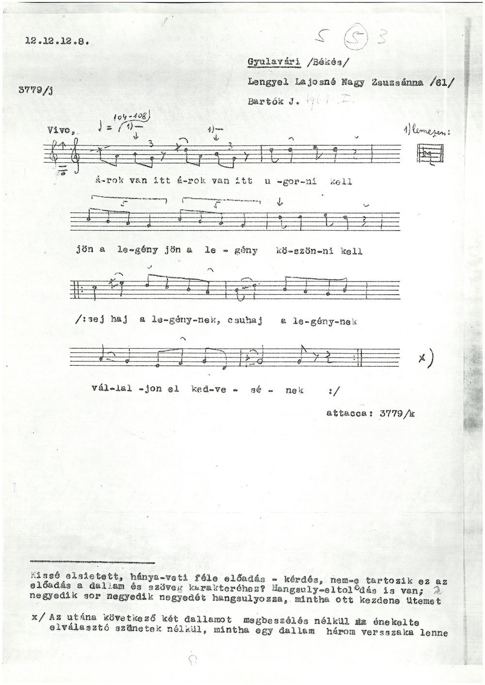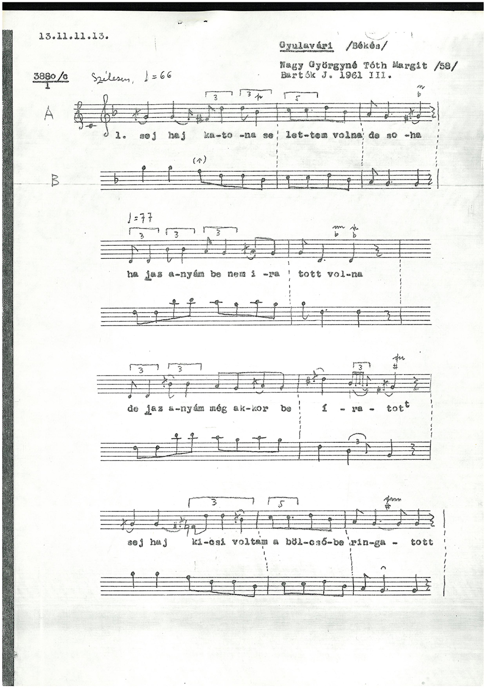 Nem látlak téged sohasem MTA BTK Zenetudományi Intézet 1961.03.11 Bartók János Gyula Békés Demkó Józsefné Illés Panna   73 magyar