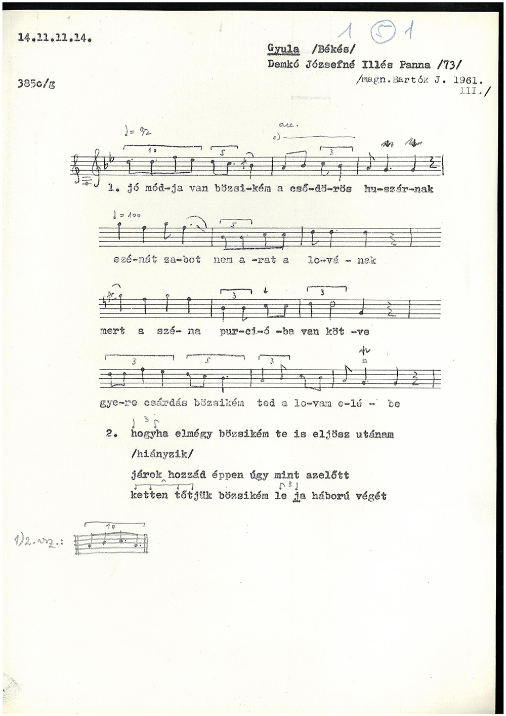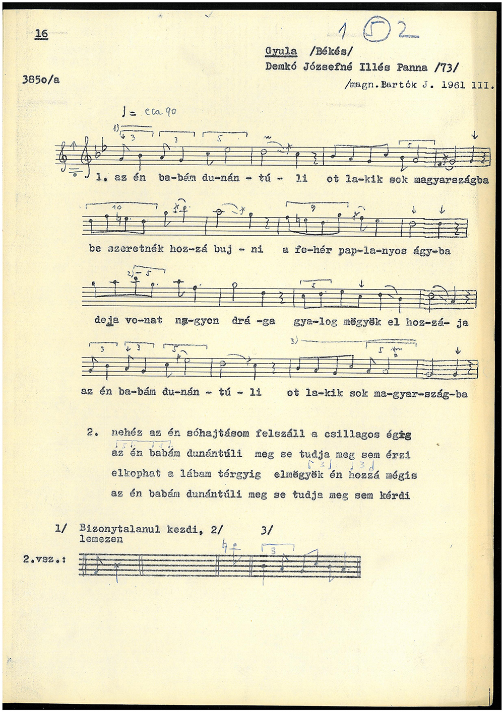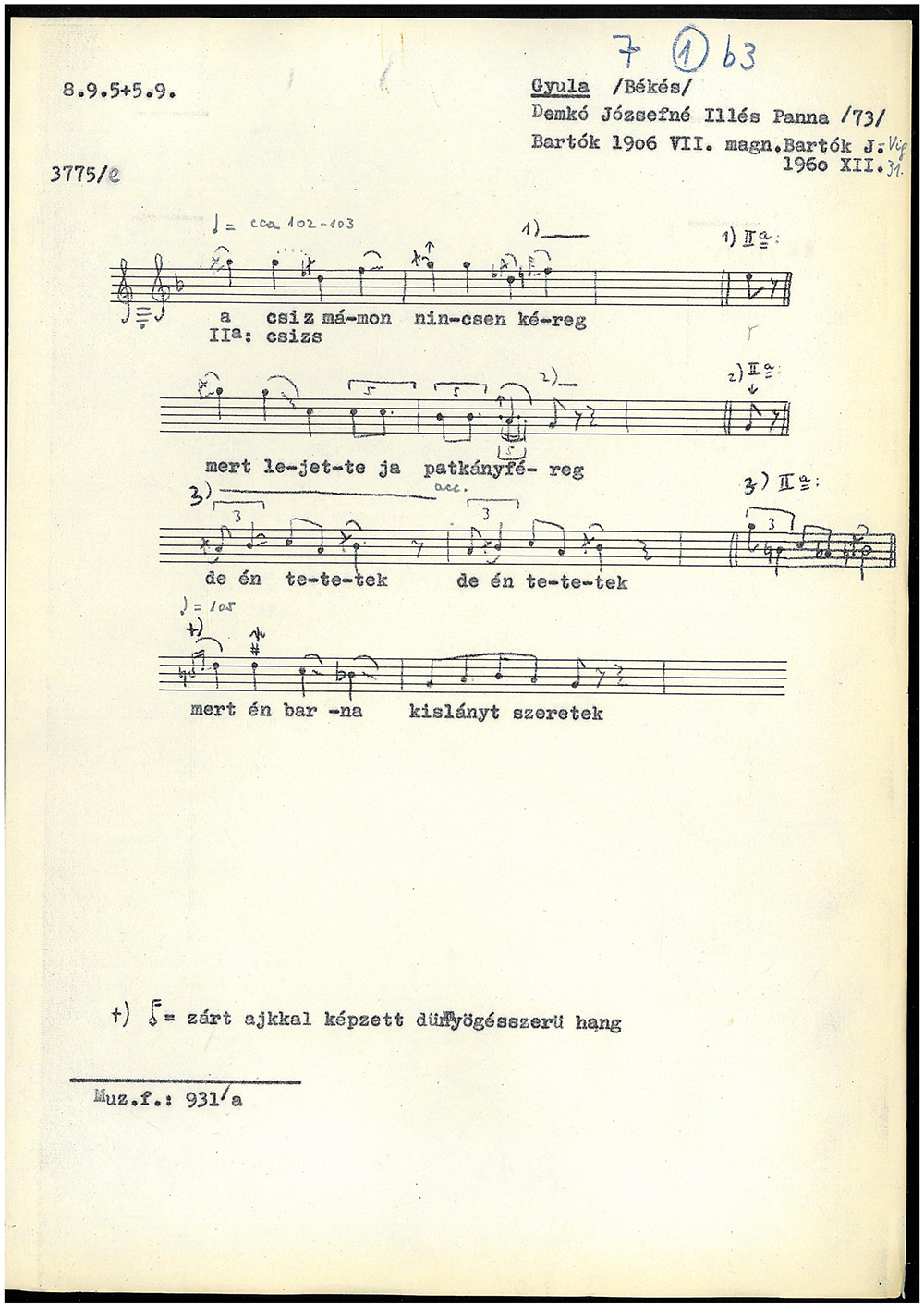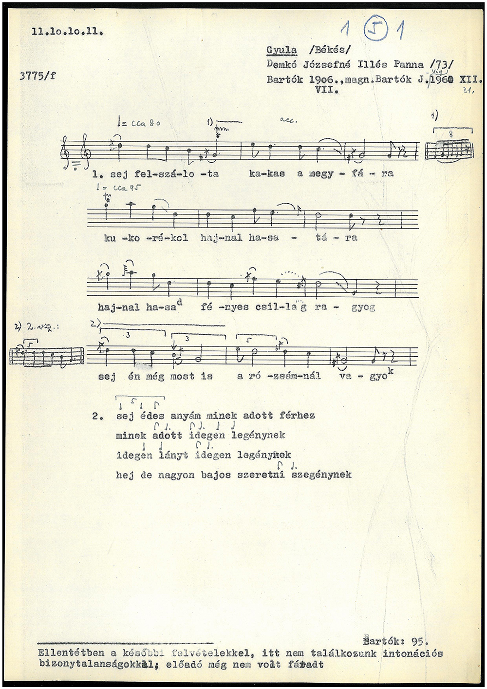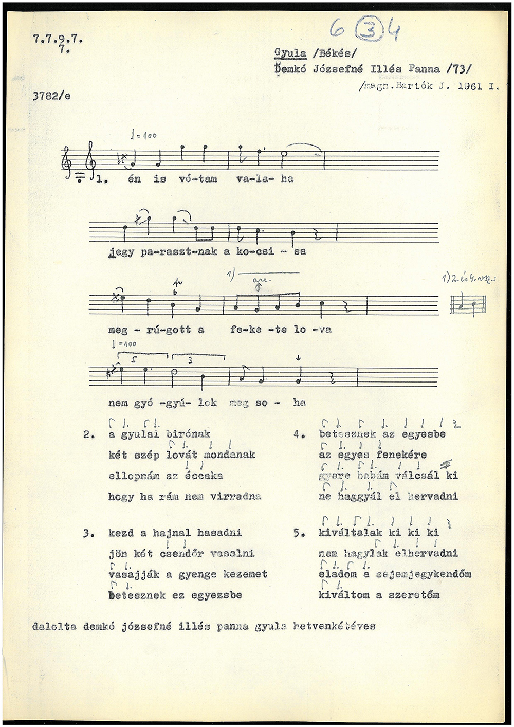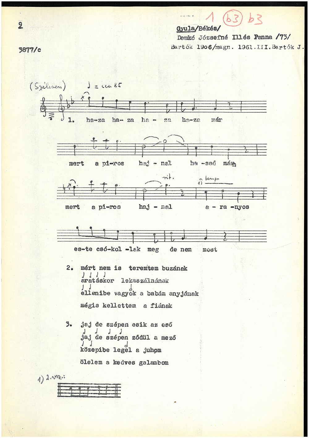 Nem látlak téged sohasem MTA BTK Zenetudományi Intézet 1961.03.11 Bartók János Gyula Békés Demkó Józsefné Illés Panna   73 magyar