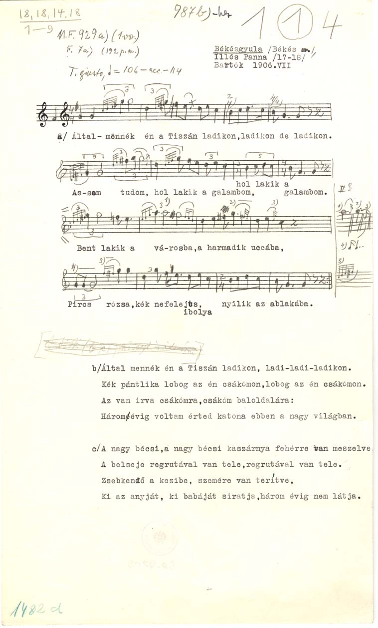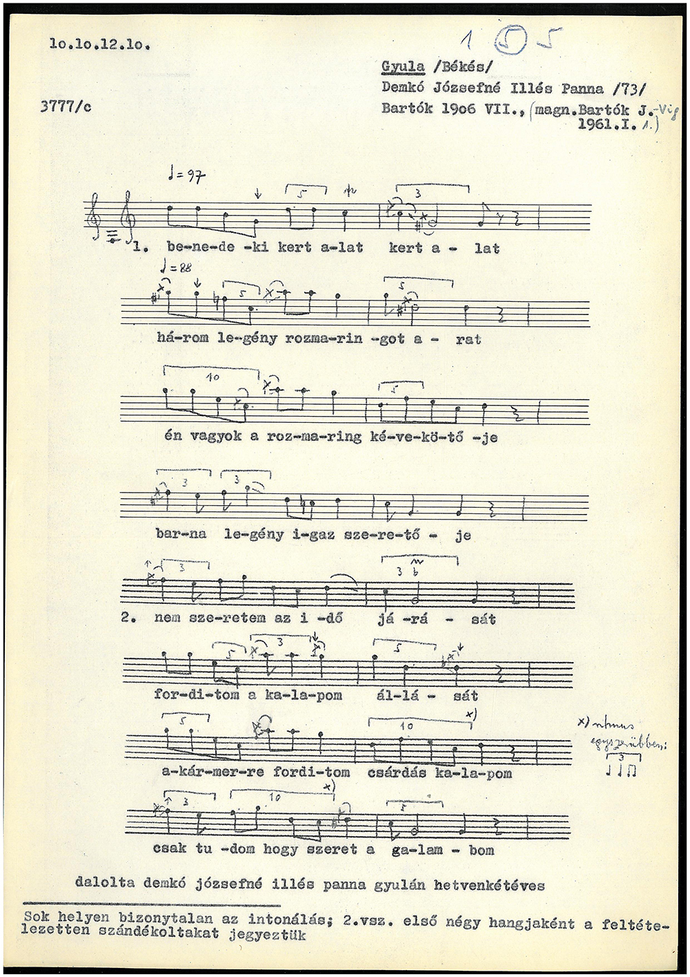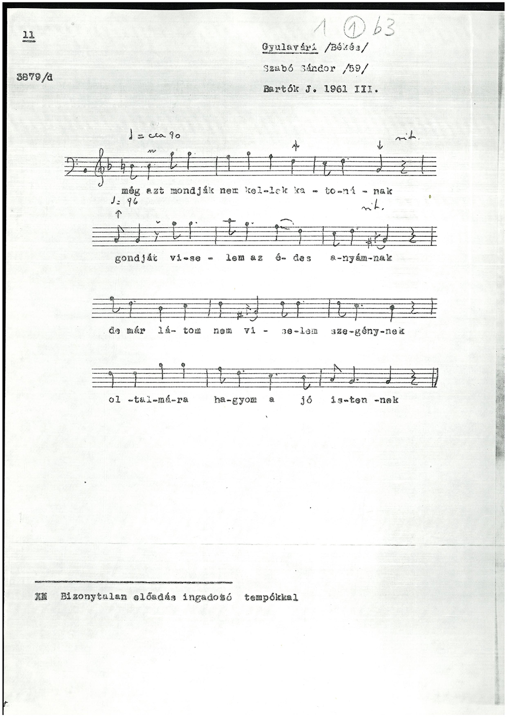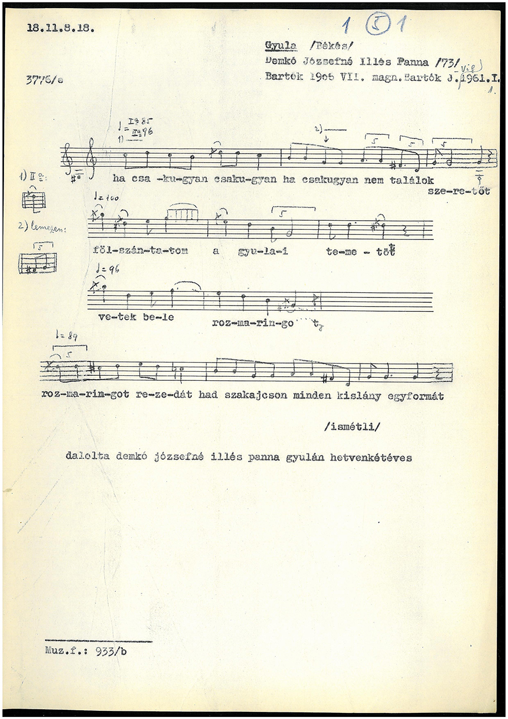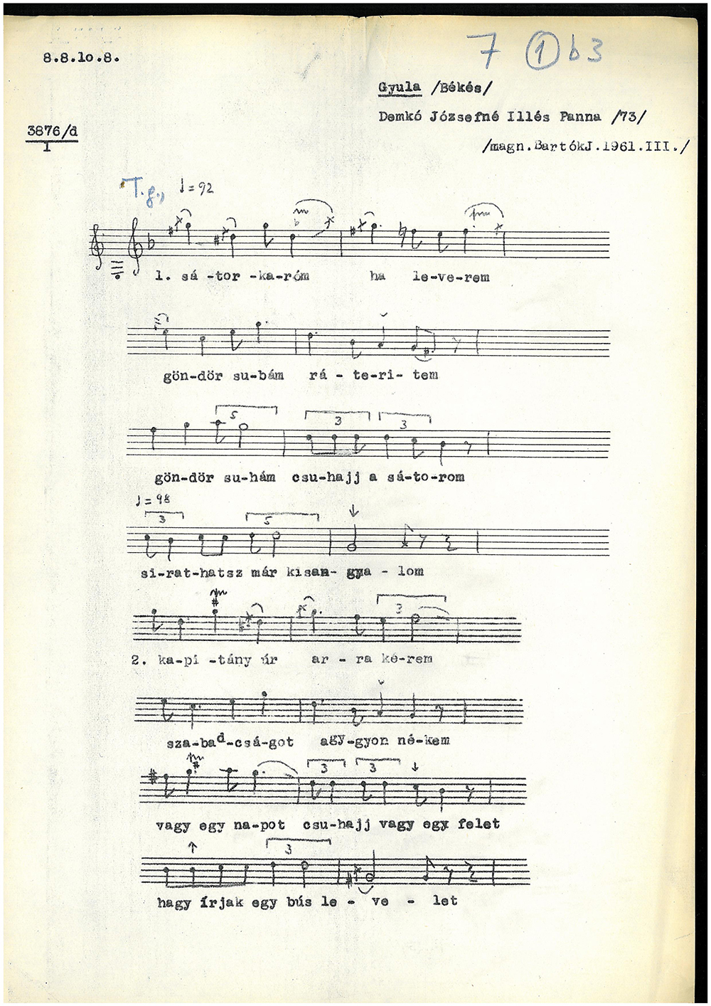 Nem látlak téged sohasem MTA BTK Zenetudományi Intézet 1961.03.11 Bartók János Gyula Békés Demkó Józsefné Illés Panna   73 magyar