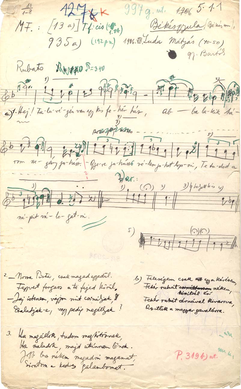 Hej! Faluvégén van egy kis fehér ház Néprajzi Múzeum 1906 Bartók Béla Gyula Békés Luda Mátyás 1860~   magyar