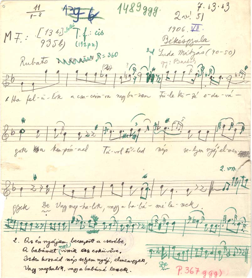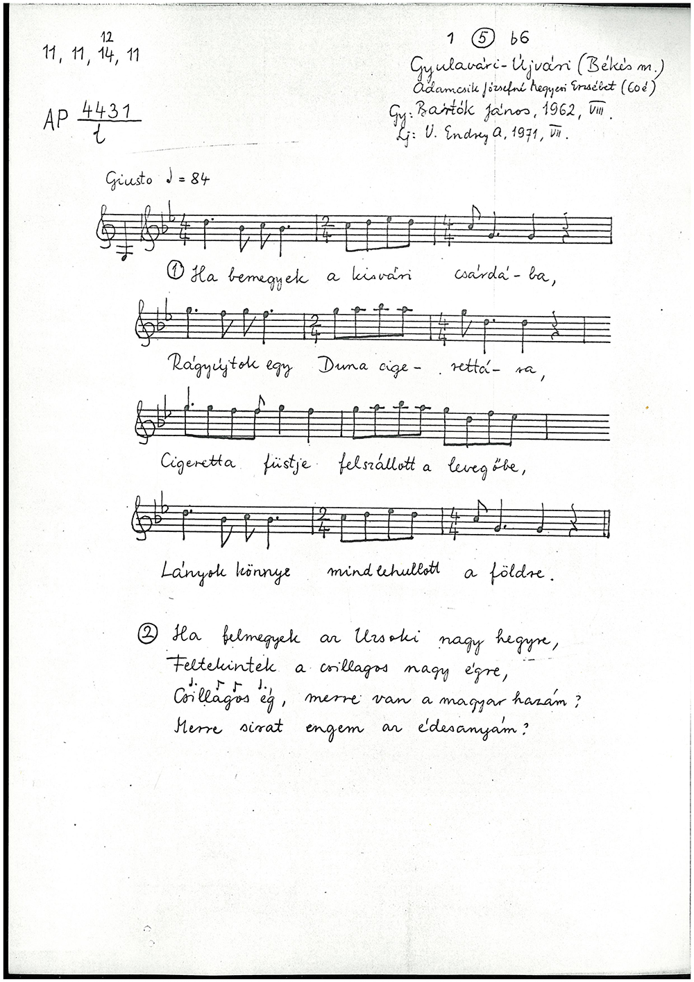 - Ha felmegyek az uzsoki nagy hegyre MTA BTK Zenetudományi Intézet 1963.03.11 Paulovics Géza Gyulavári Békés Adamcsik Józsefné Medgyesi Erzsébet   60 magyar