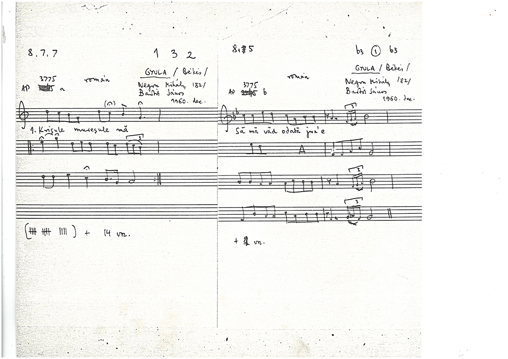 Krišule murešule mă MTA BTK Zenetudományi Intézet 1960.12.31-01.01 Bartók János Gyula Békés Negru Mihály   82 román