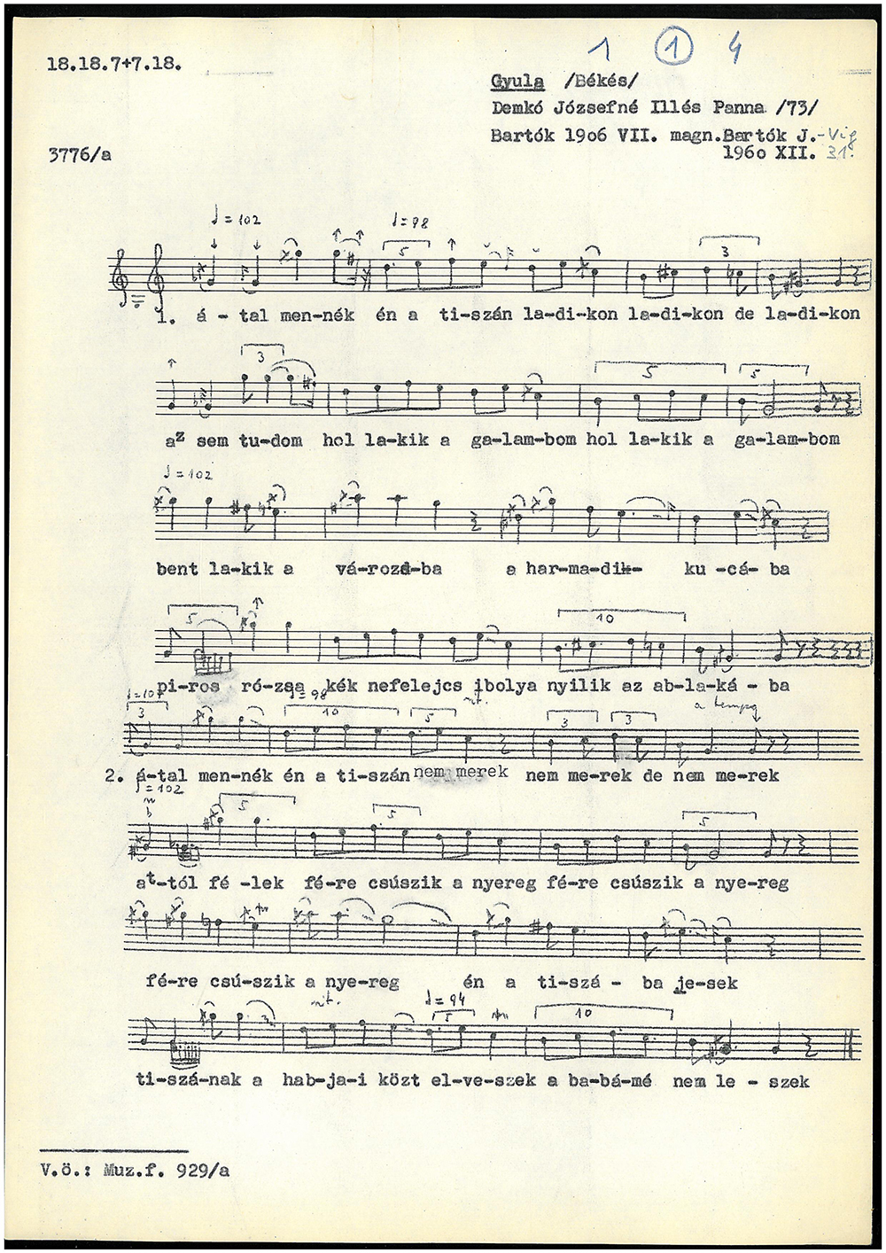 - Általmennék én a Tiszán ladikon MTA BTK Zenetudományi Intézet 1967.10.19 Olsvai Imre Gyula Békés özv. Sebestyén Pálné Gombos Erzsébet   60 magyar