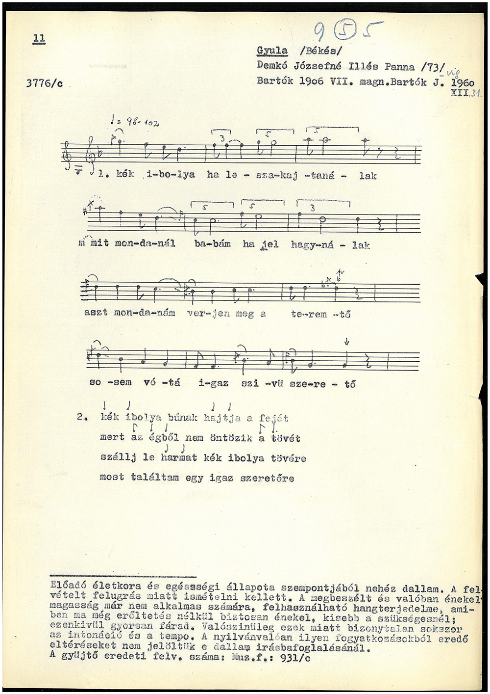 Kék ibolya, ha leszakajtanálak MTA BTK Zenetudományi Intézet 1960.12.31-01.01 Bartók János Gyula Békés Demkó Józsefné Illés Panna   73 magyar