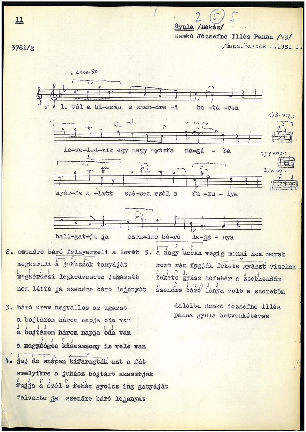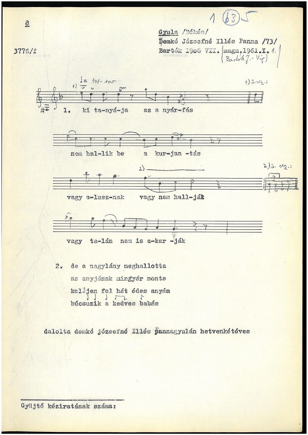Ki tanyája ez a nyárfás MTA BTK Zenetudományi Intézet 1961.01.01 Bartók János Gyula Békés Demkó Józsefné Illés Panna   73 magyar