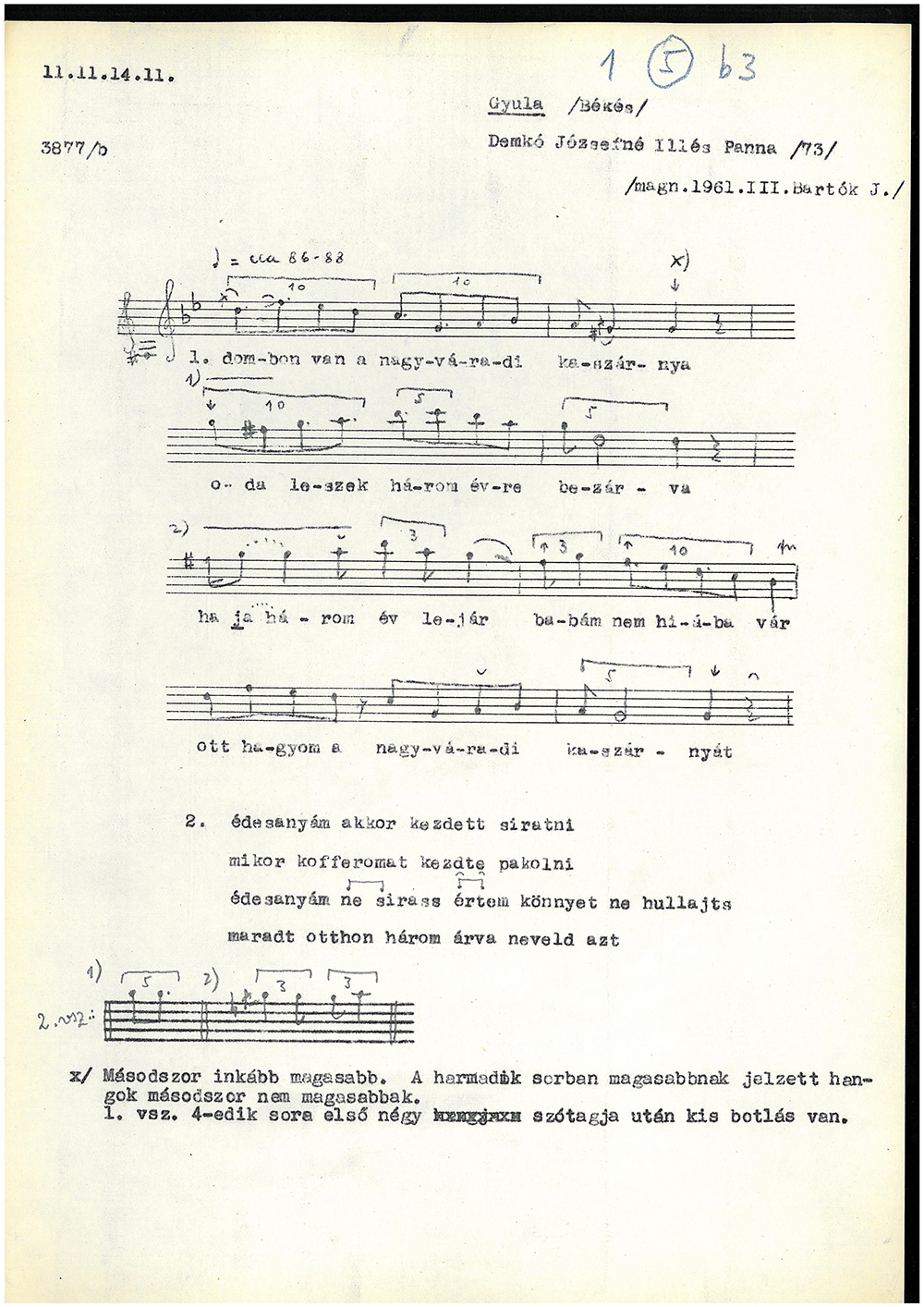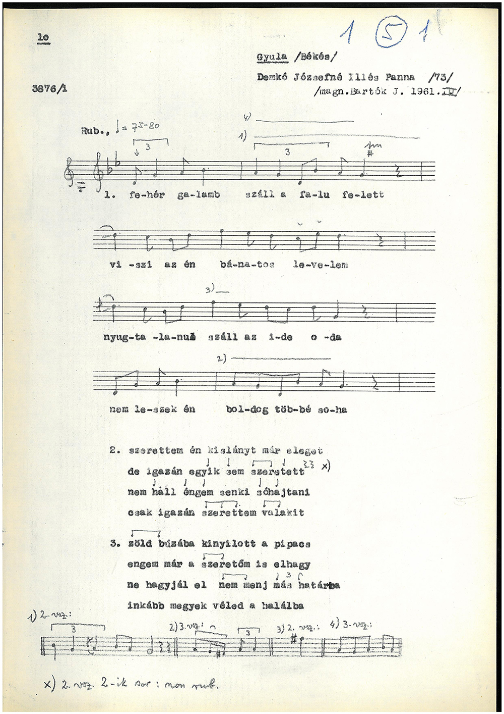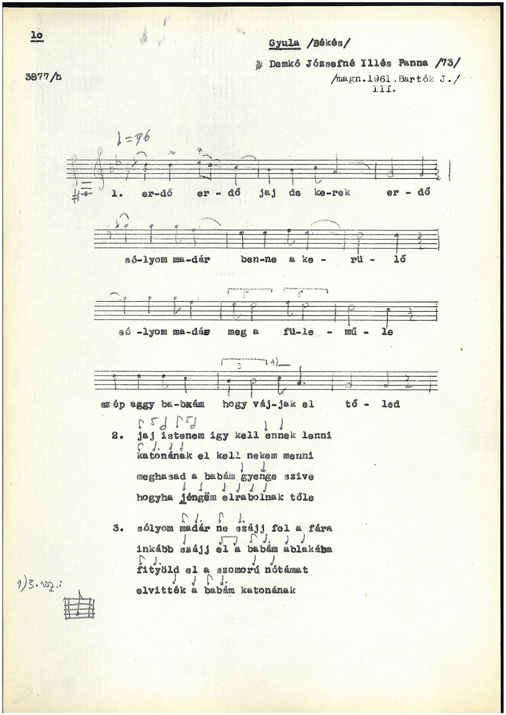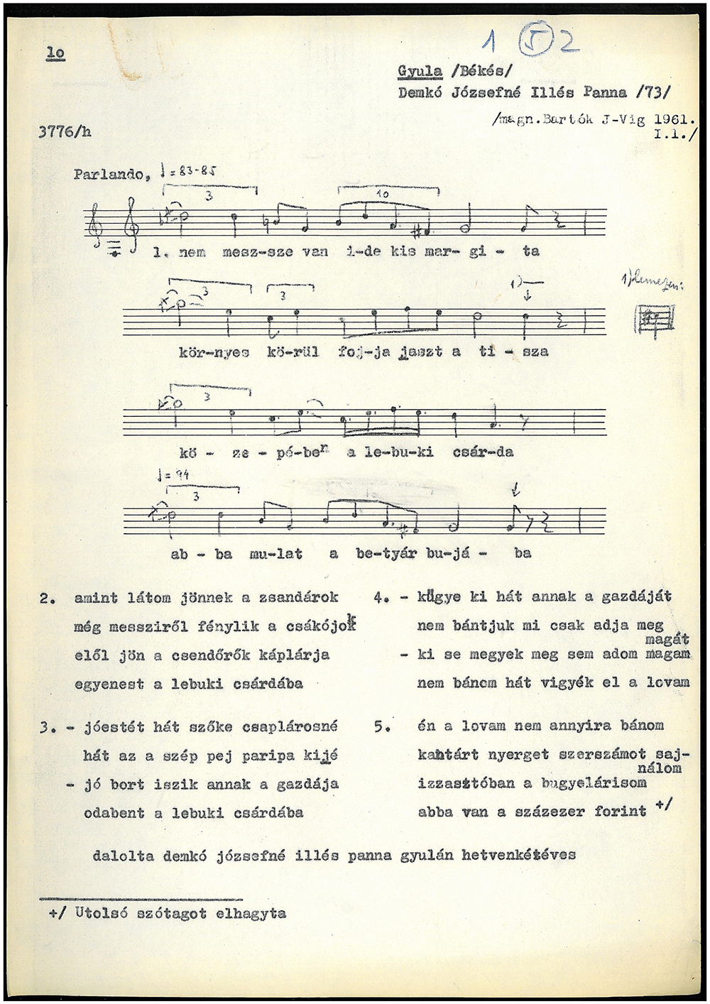 Itt hagyom a falutokat nemsokára MTA BTK Zenetudományi Intézet 1961.01.01 Bartók János Gyula Békés Demkó Józsefné Illés Panna   73 magyar