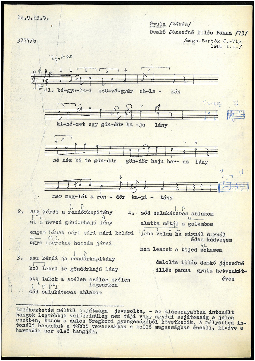 Nyitva van a százados úr ablaka MTA BTK Zenetudományi Intézet 1961.03.11 Bartók János Gyula Békés Demkó Józsefné Illés Panna   73 magyar