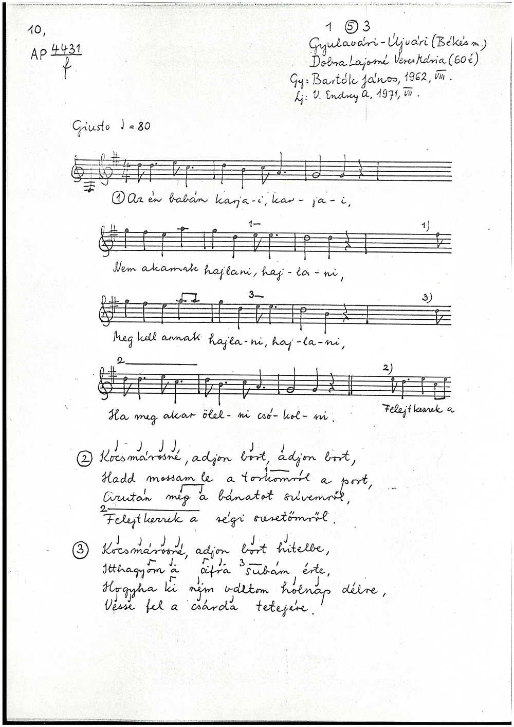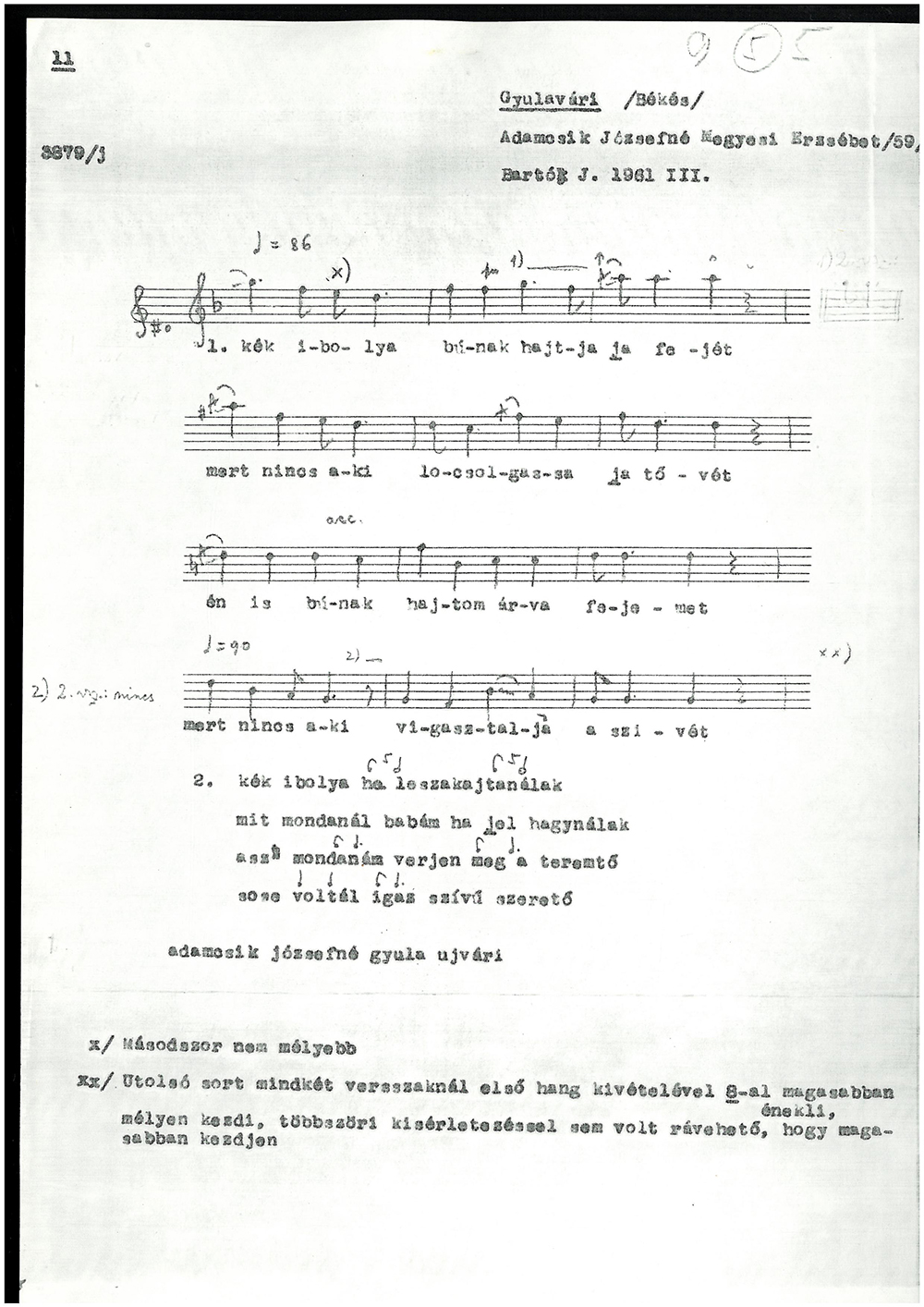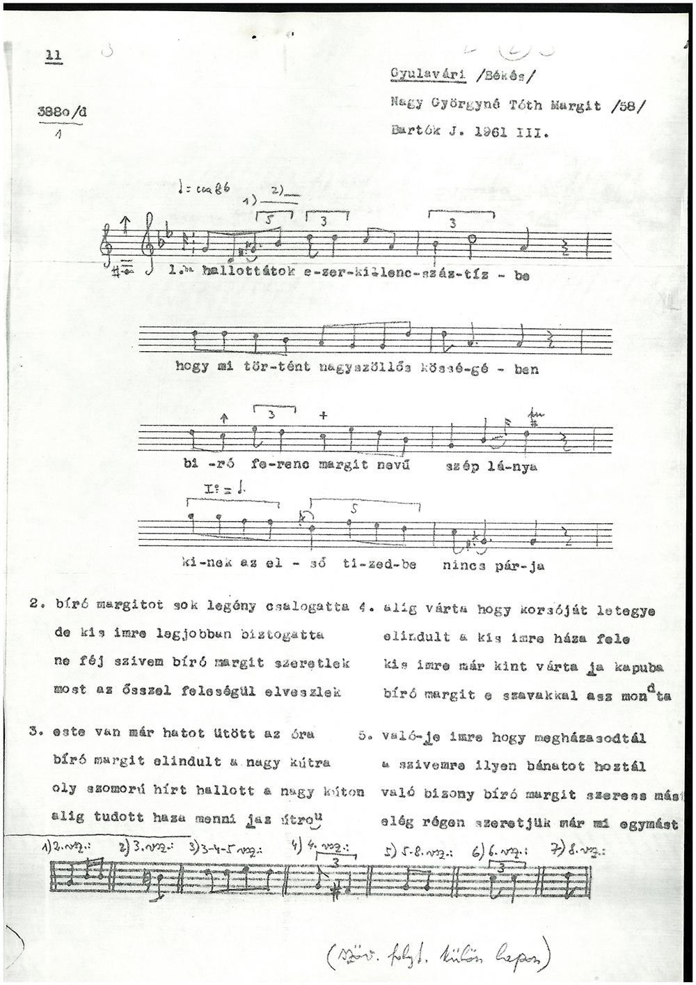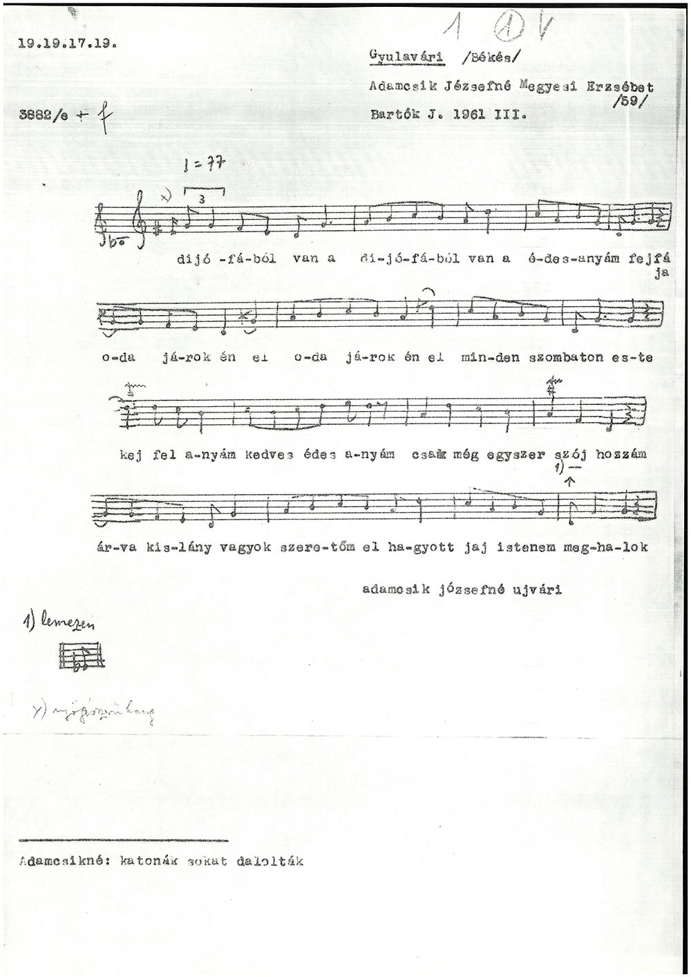 Balog Böske fehér ágyát MTA BTK Zenetudományi Intézet 1961.01.04 Bartók János Gyulavári Békés Lengyel Lajosné Nagy Zsuzsánna   61 magyar