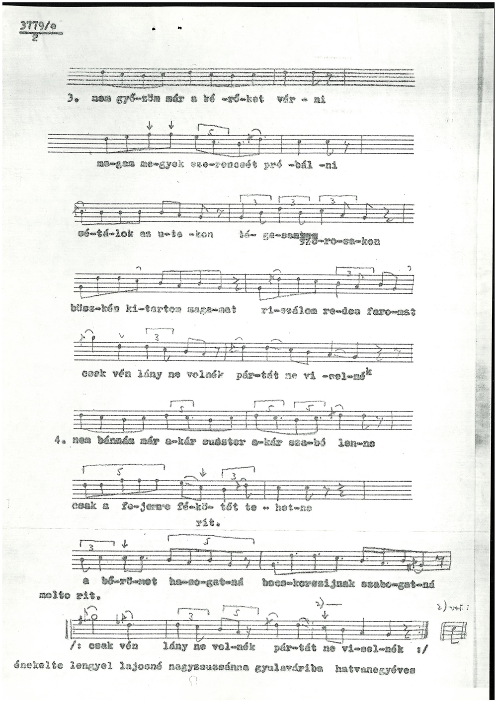Ha csakugyan, csakugyan, ha csakugyan nem találok szeretőt MTA BTK Zenetudományi Intézet 1960.12.31-01.01 Bartók János Gyula Békés Demkó Józsefné Illés Panna   73 magyar