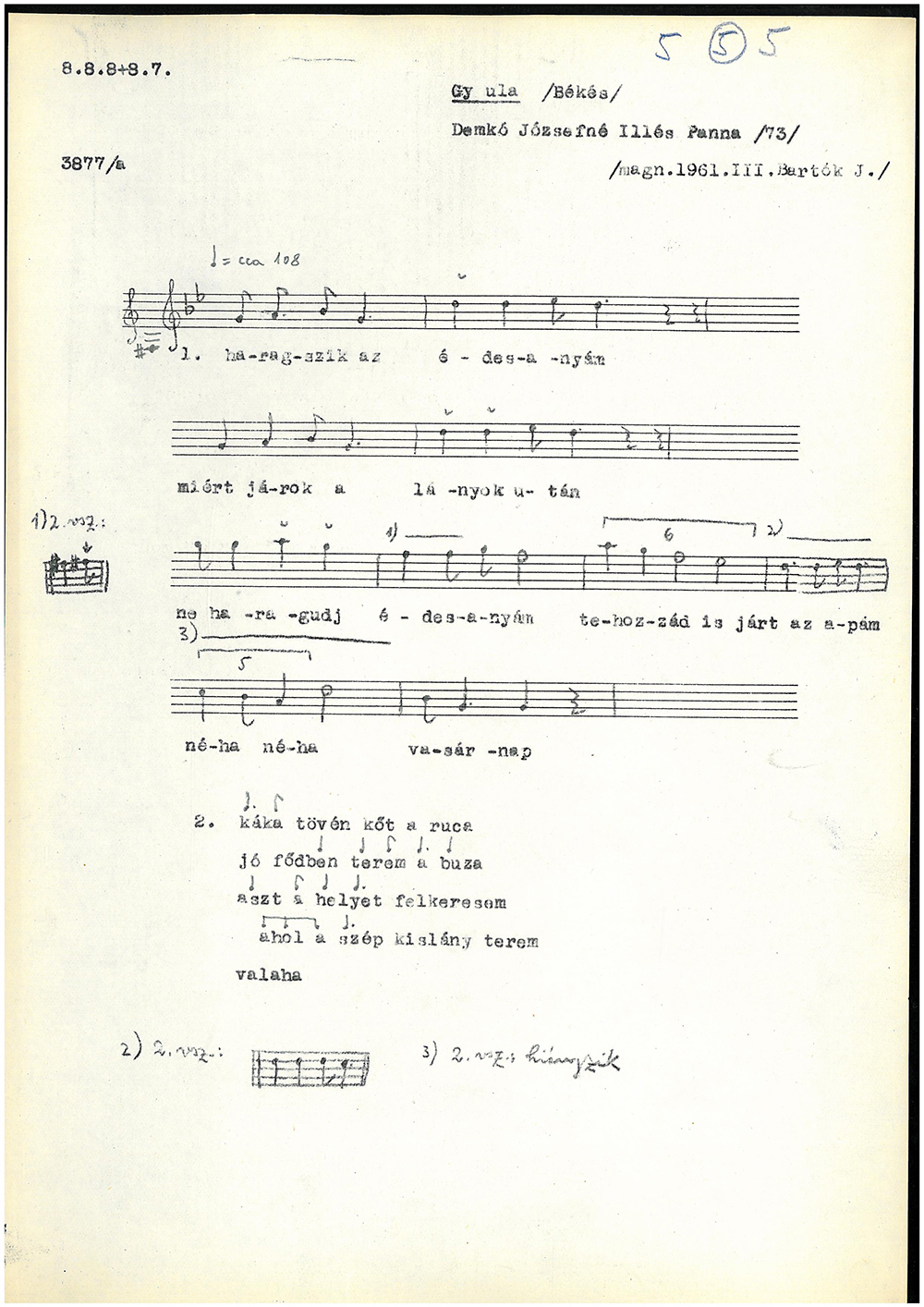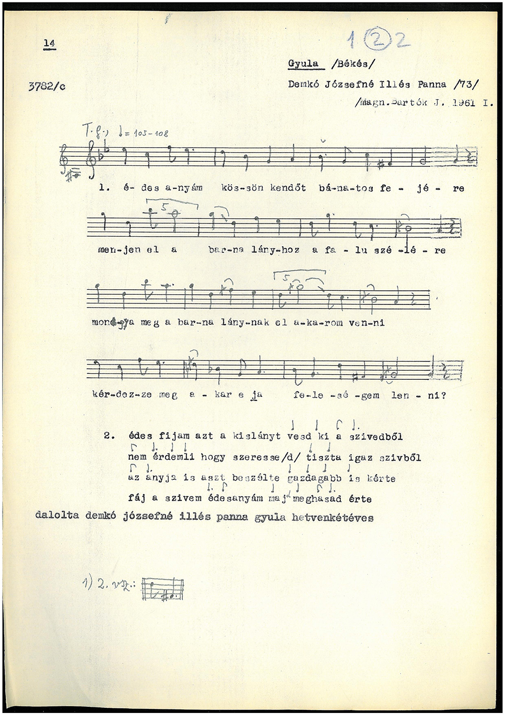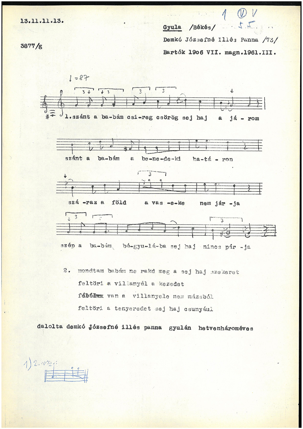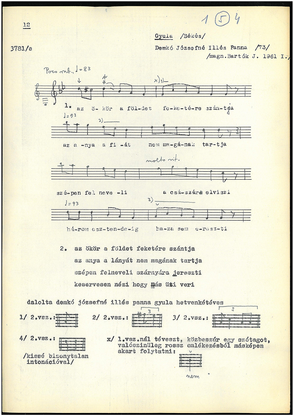 Haragszik az édesanyám MTA BTK Zenetudományi Intézet 1961.03.11 Bartók János Gyula Békés Demkó Józsefné Illés Panna   73 magyar