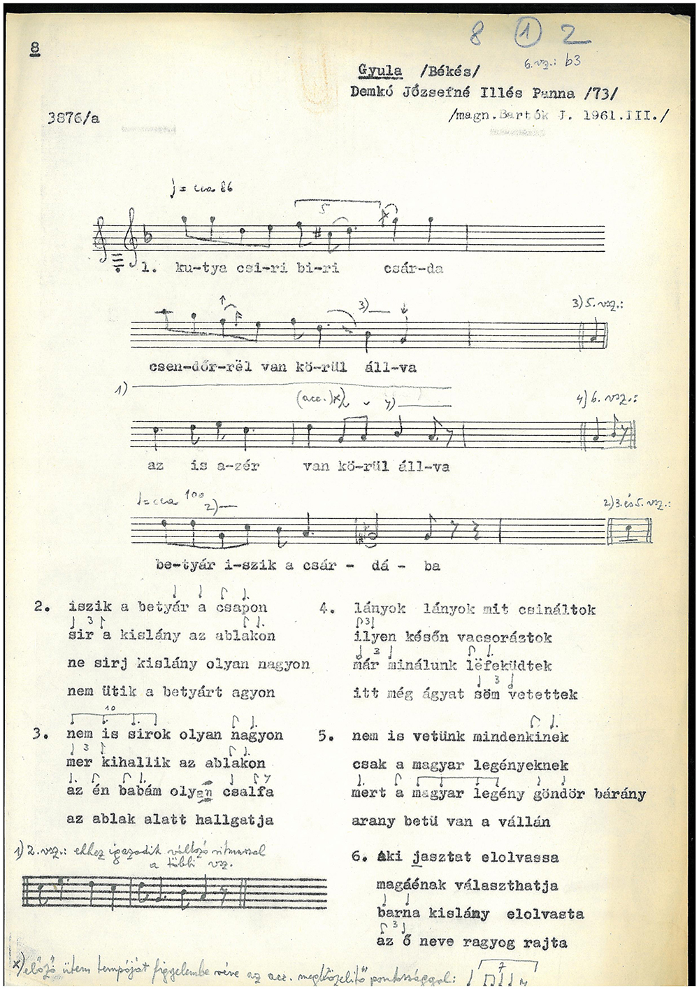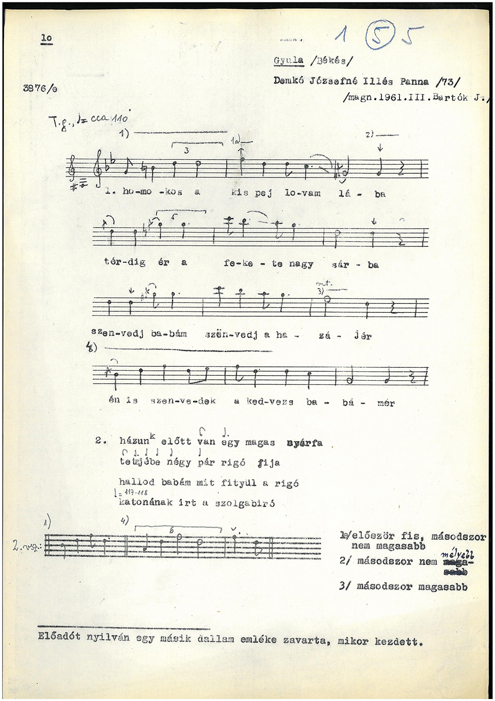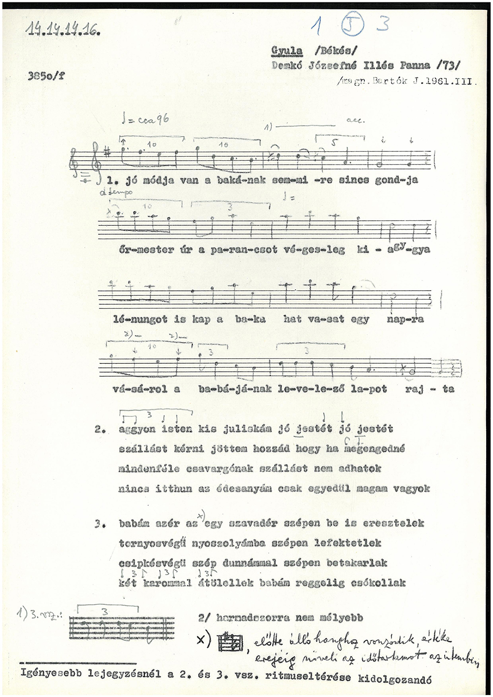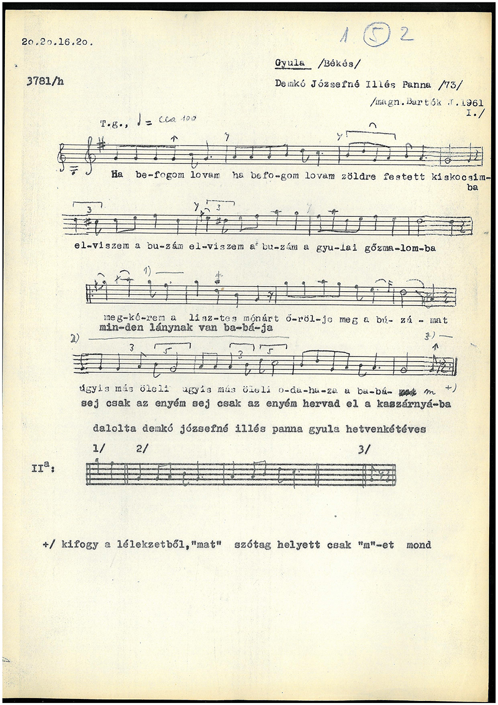 Homokos a kis pejlovam lába MTA BTK Zenetudományi Intézet 1961.03.11 Bartók János Gyula Békés Demkó Józsefné Illés Panna   73 magyar