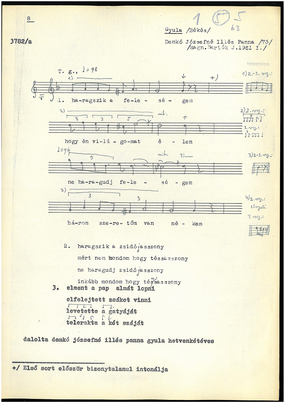 Haragszik a feleségem MTA BTK Zenetudományi Intézet 1961.01.08 Bartók János Gyula Békés Demkó Józsefné Illés Panna   72 magyar