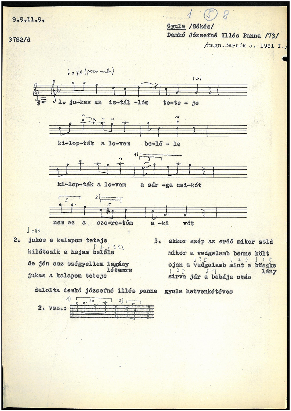 Lyukas az istálló teteje MTA BTK Zenetudományi Intézet 1961.01.08 Bartók János Gyula Békés Demkó Józsefné Illés Panna   72 magyar
