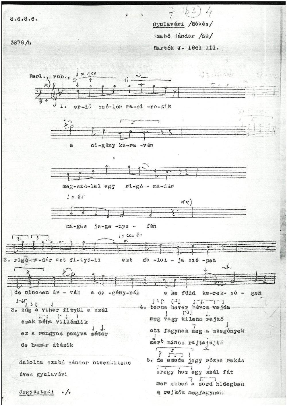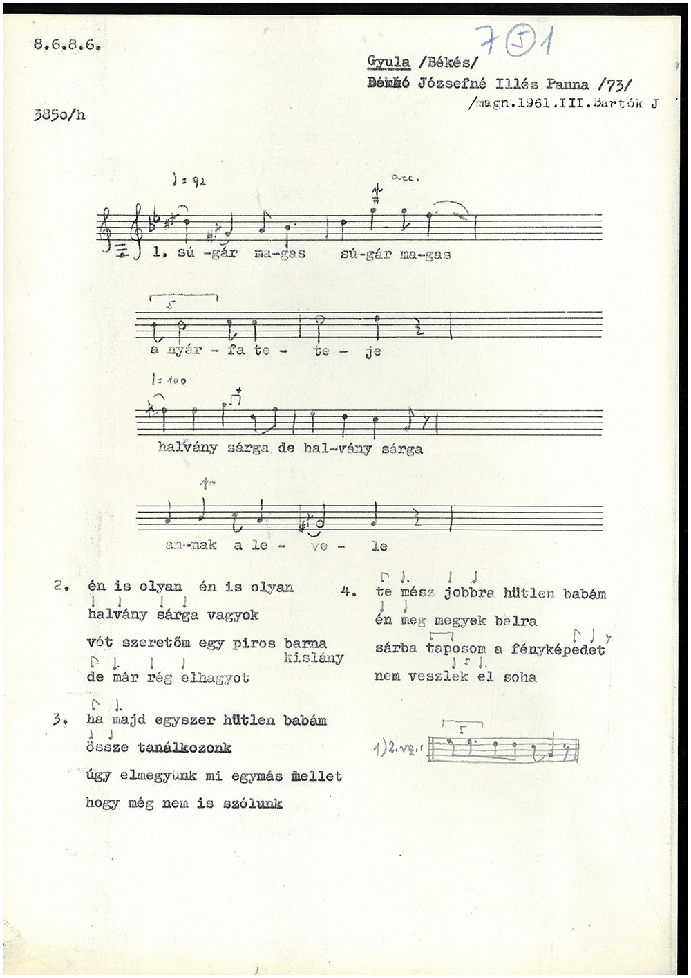 Sugár magas sugár magas a nyárfa teteje MTA BTK Zenetudományi Intézet 1961.03.11 Bartók János Gyula Békés Demkó Józsefné Illés Panna   73 magyar