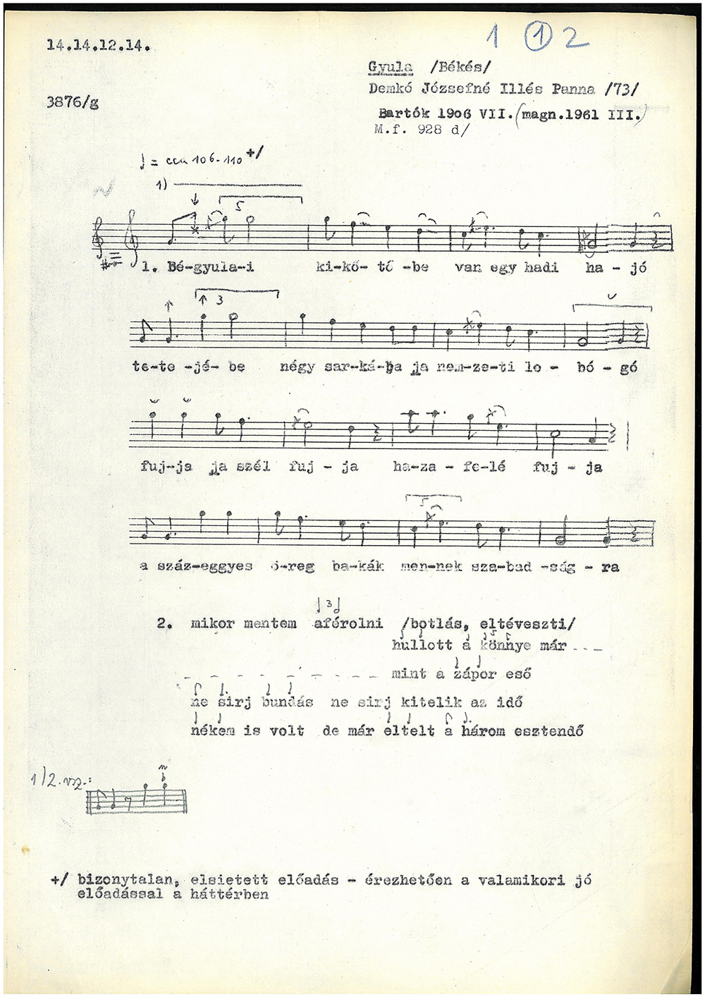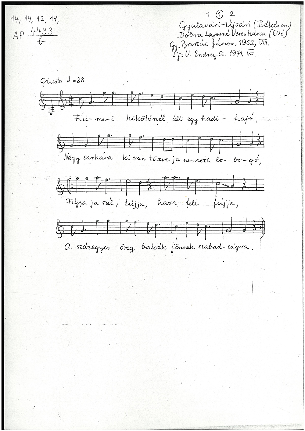 Bégyulai kikötőbe van egy hadihajó MTA BTK Zenetudományi Intézet 1961.03.11 Bartók János Gyula Békés Demkó Józsefné Illés Panna   73 magyar