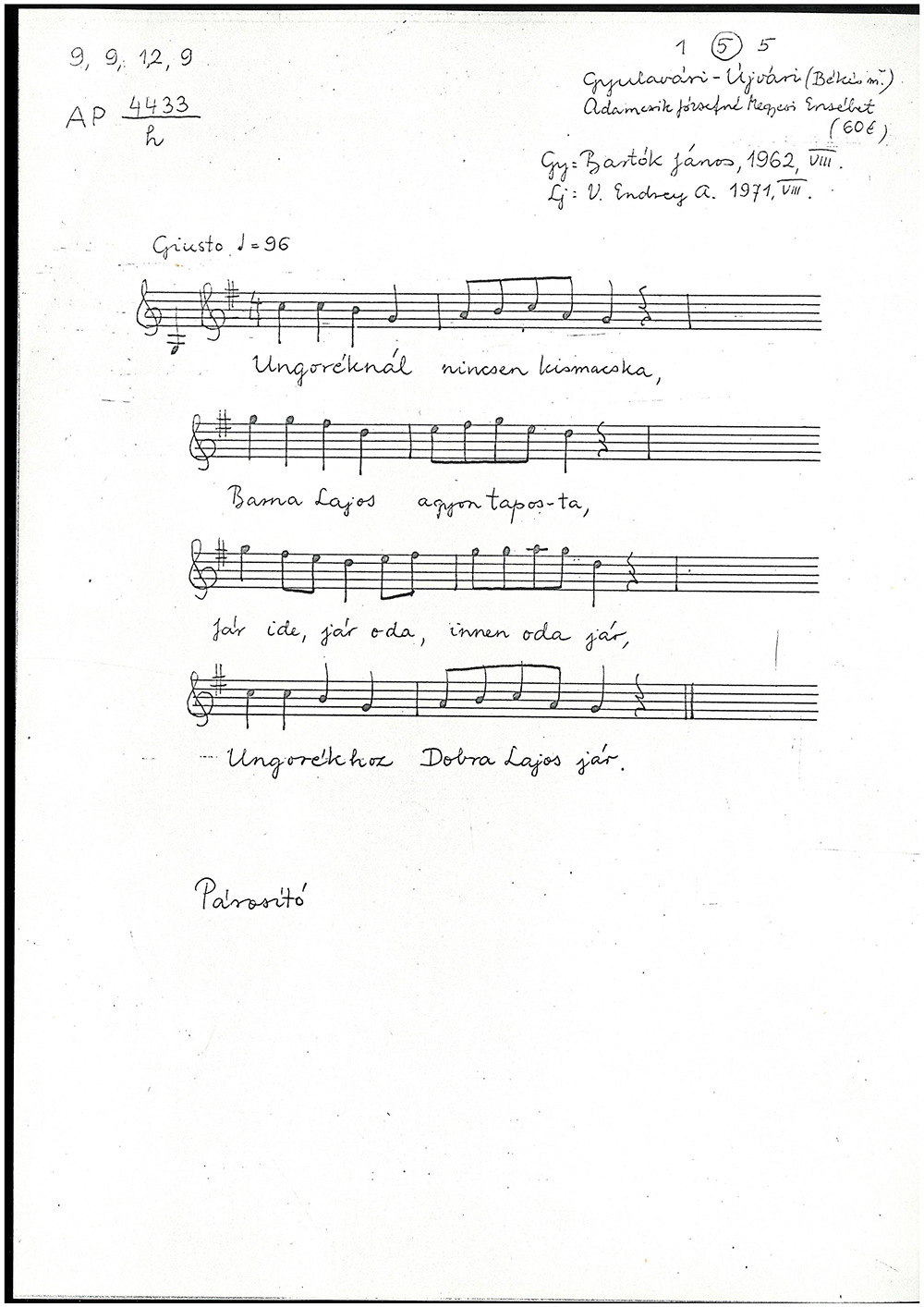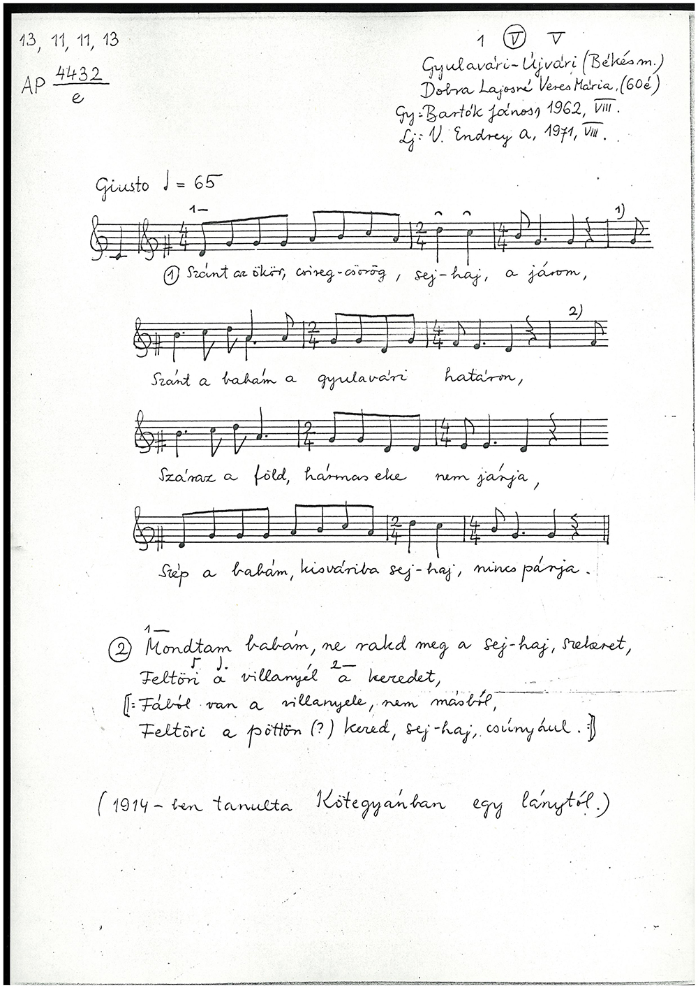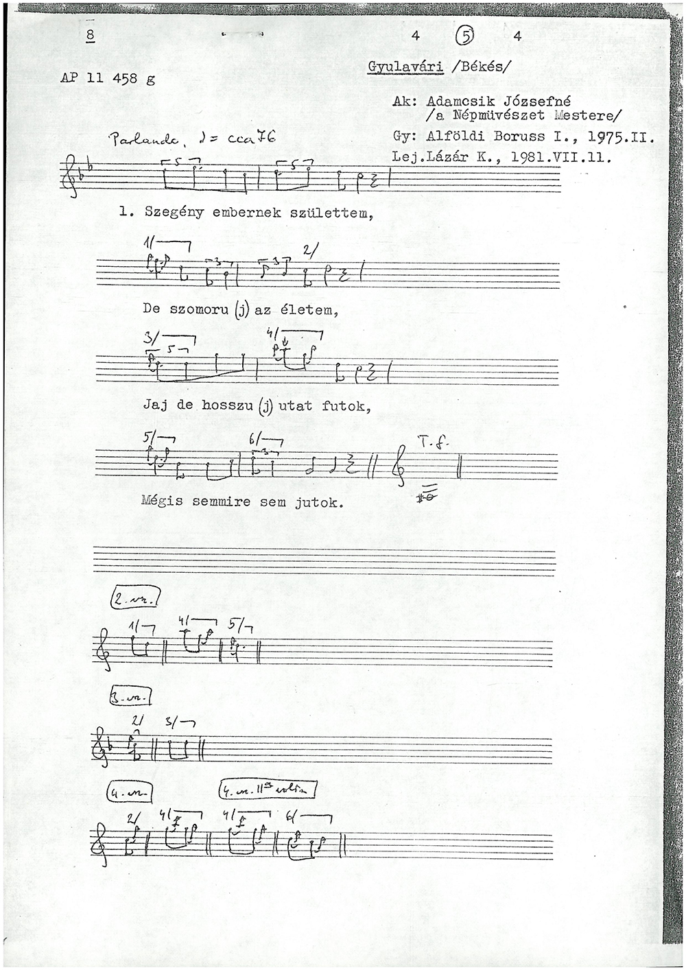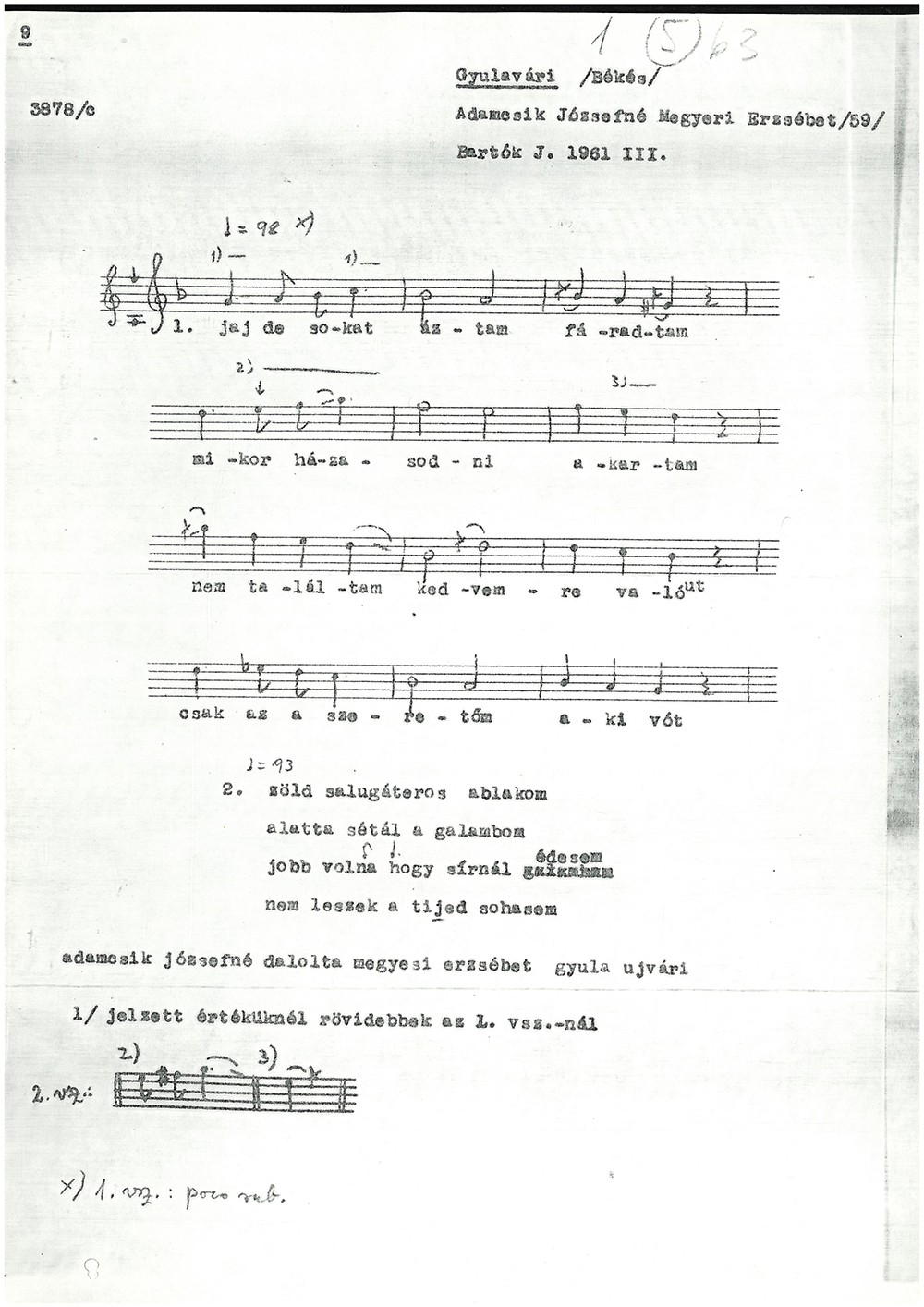 - Jaj, de sokat áztam, fáradtam MTA BTK Zenetudományi Intézet 1963.03.11 Paulovics Géza Gyulavári Békés Adamcsik Józsefné Medgyesi Erzsébet   60 magyar