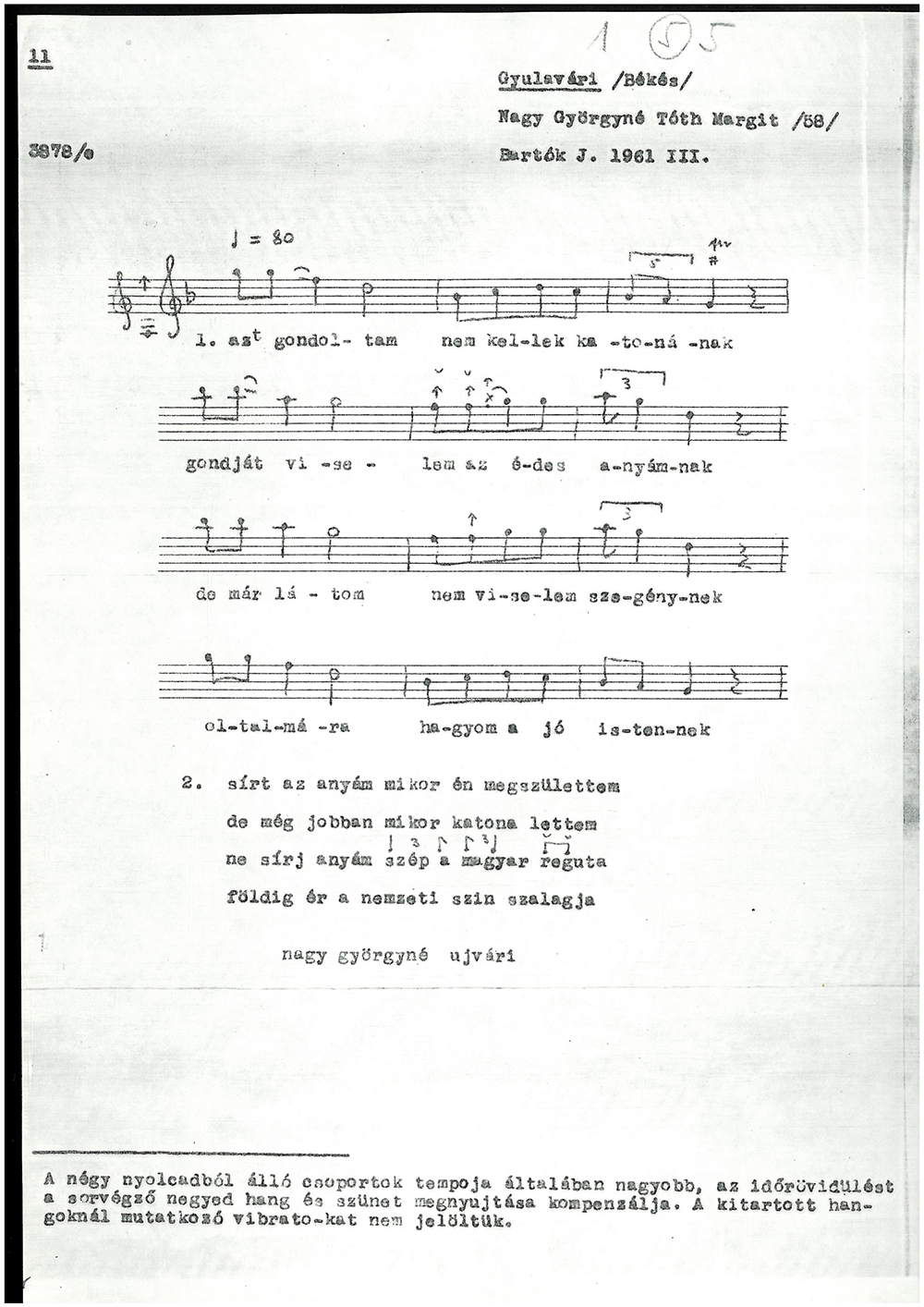Azt gondoltam nem kellek katonának MTA BTK Zenetudományi Intézet 1961.03.12 Bartók János Gyulavári Békés Nagy Györgyné Tóth Margit   58 magyar