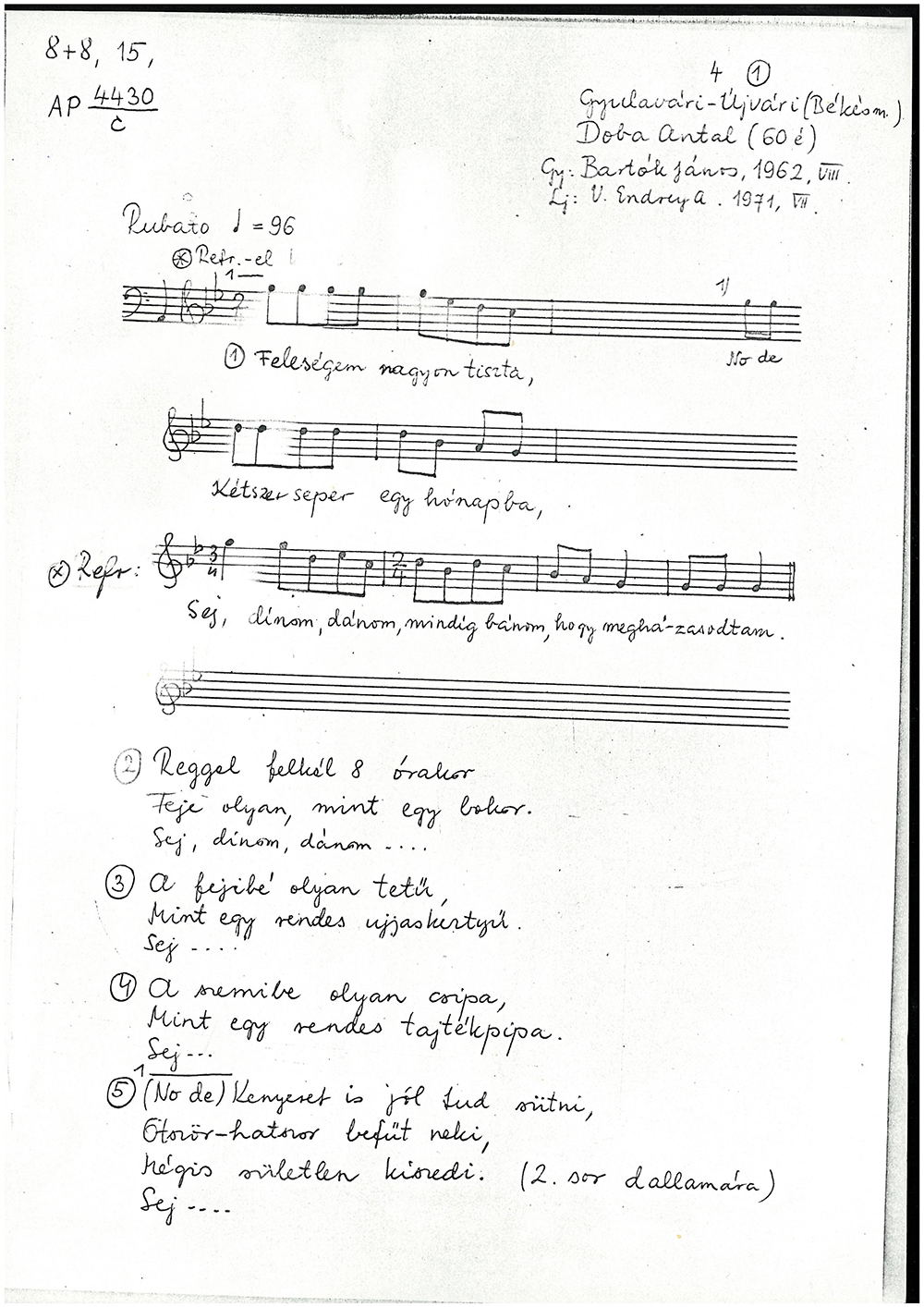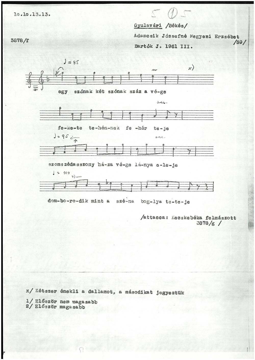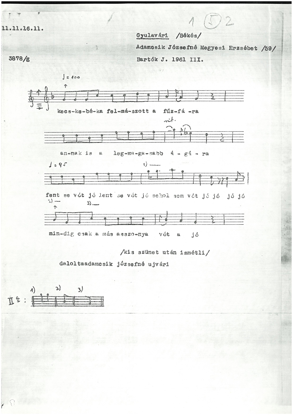 Egy szónak két szónak száz a vége MTA BTK Zenetudományi Intézet 1961.03.12 Bartók János Gyulavári Békés Adamcsik Józsefné Megyesi Erzsébet   59 magyar