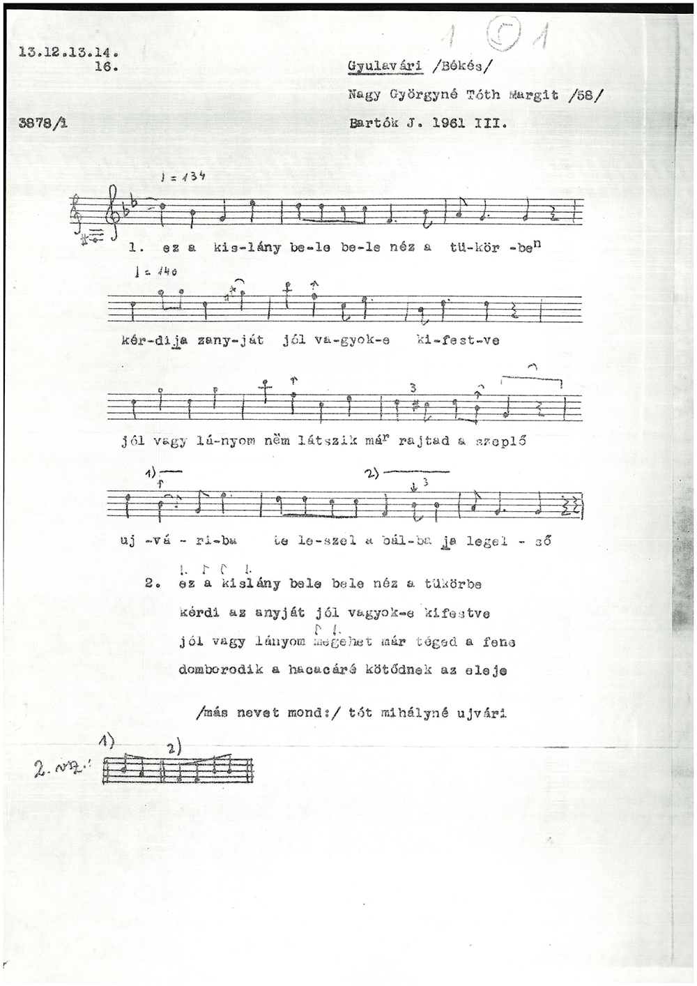 Ez a kislány bele-belenéz a tükörbe MTA BTK Zenetudományi Intézet 1961.03.19 Bartók János Gyulavári Békés Nagy Györgyné Tóth Margit   58 magyar