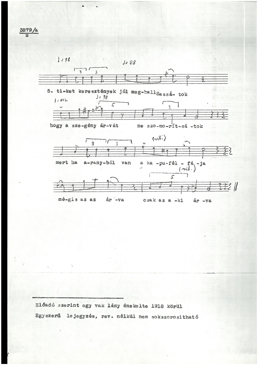 Volt már nekem száz forintom, el is tartott három nap MTA BTK Zenetudományi Intézet 1961.01.05 Bartók János Gyulavári Békés Apponyi Antal   65 magyar