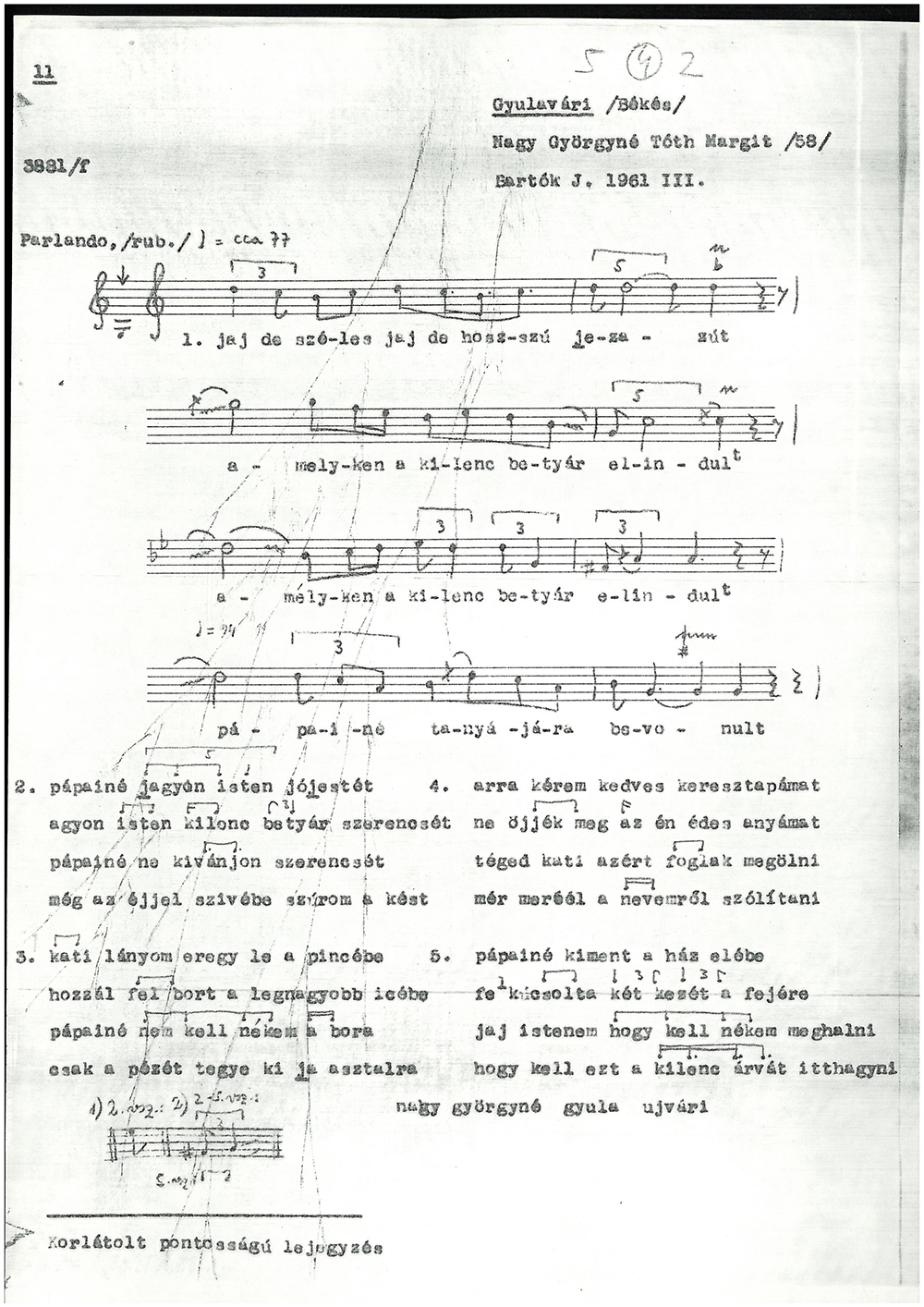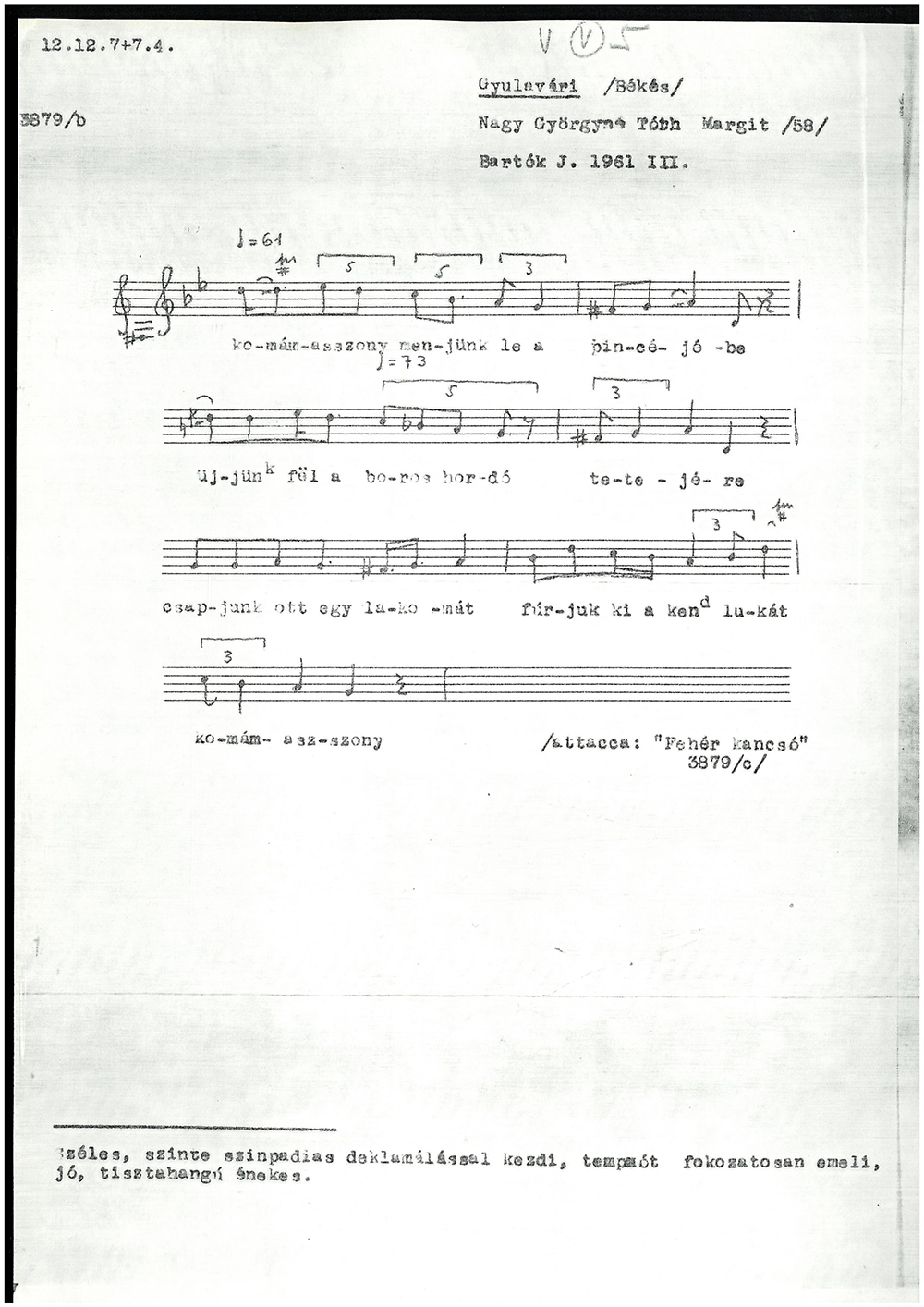 Komámasszony menjünk le a pincéjébe MTA BTK Zenetudományi Intézet 1961.03.19 Bartók János Gyulavári Békés Nagy Györgyné Tóth Margit   58 magyar