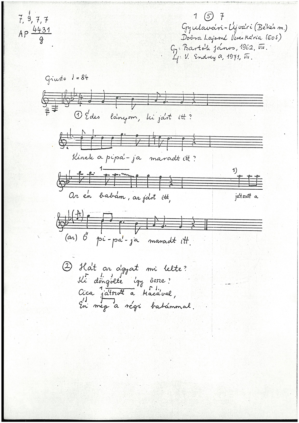 Ezt a kislányt sejehaj ezt a kislányt nem az MTA BTK Zenetudományi Intézet 1962.08 Bartók János Gyulavári Békés Nagy Györgyné   59 magyar