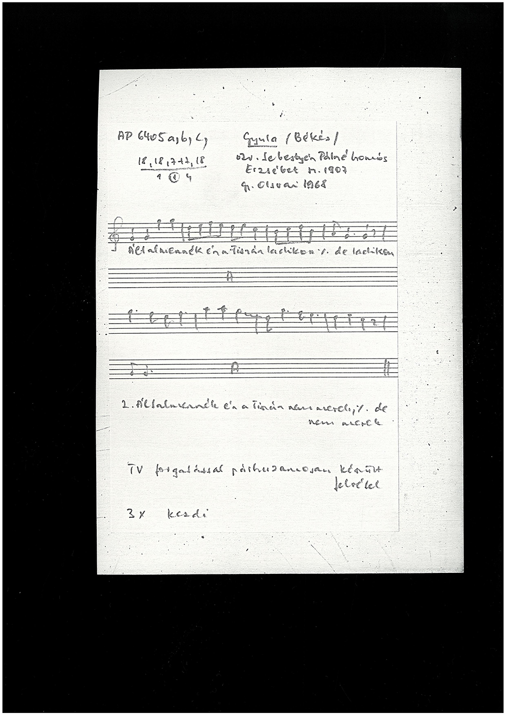 Általmennék én a Tiszán MTA BTK Zenetudományi Intézet 1968.03.02 Olsvai Imre Gyula Békés özv. Sebestyén Pálné Gombos Erzsébet   61 magyar